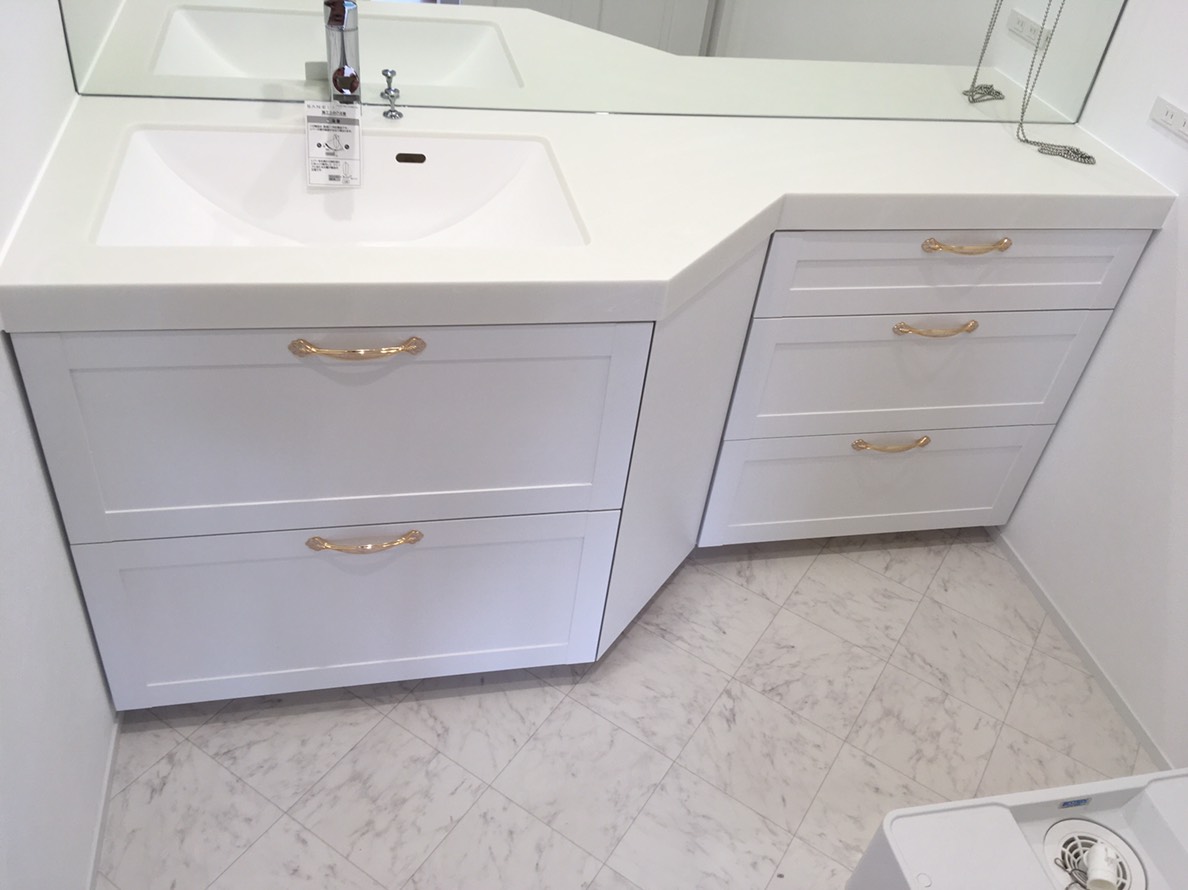 人工大理石のカウンターとベースキャビネットともに造作です! お施主様とデザイナーさんと思考を重ねた一品です!