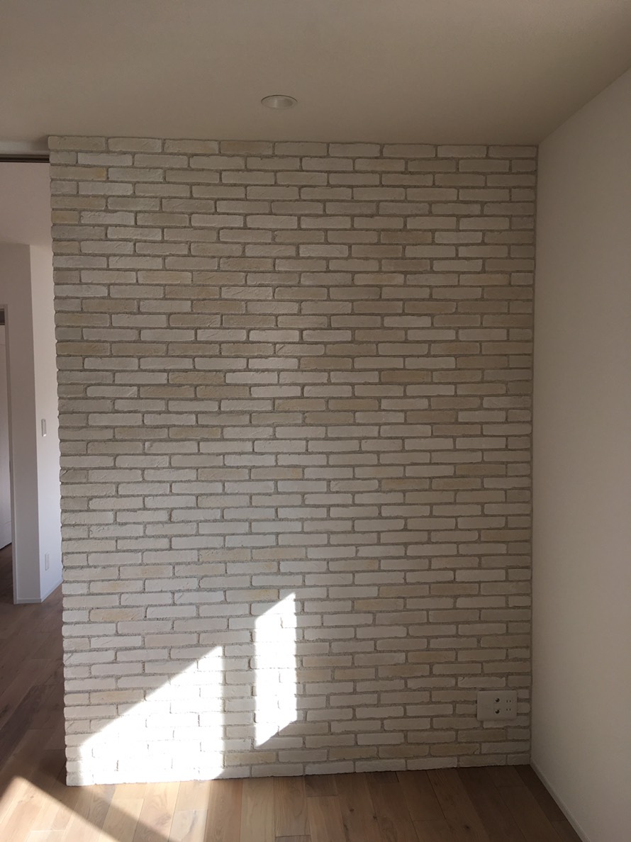 壁一面に床から天井までタイルを施工しております。 インパクトがあり、間取りのアクセントとしてとても素敵な仕上がりとなりました!
