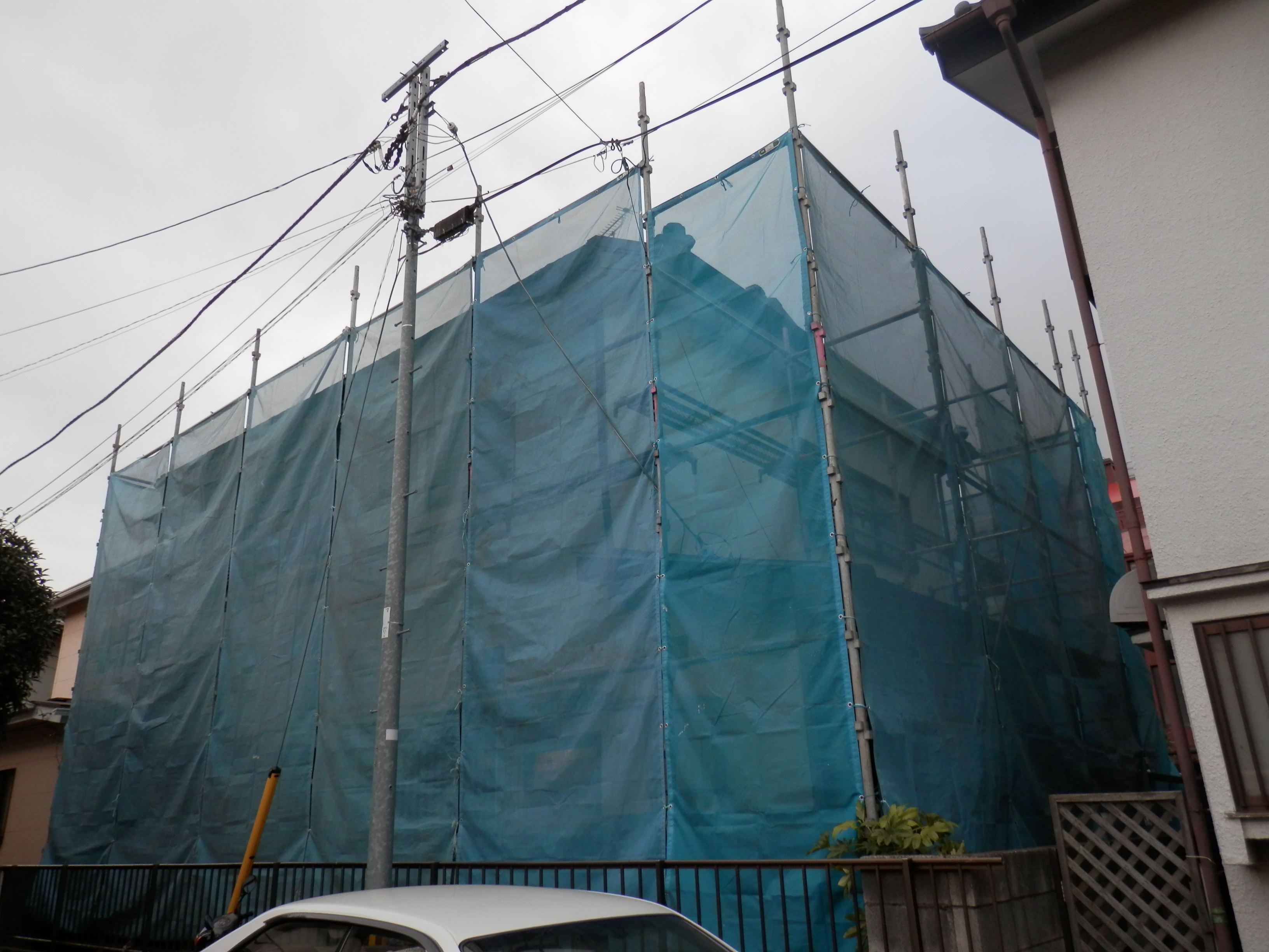 まずは施工をするのにお家に足場をつけさせて頂きます。