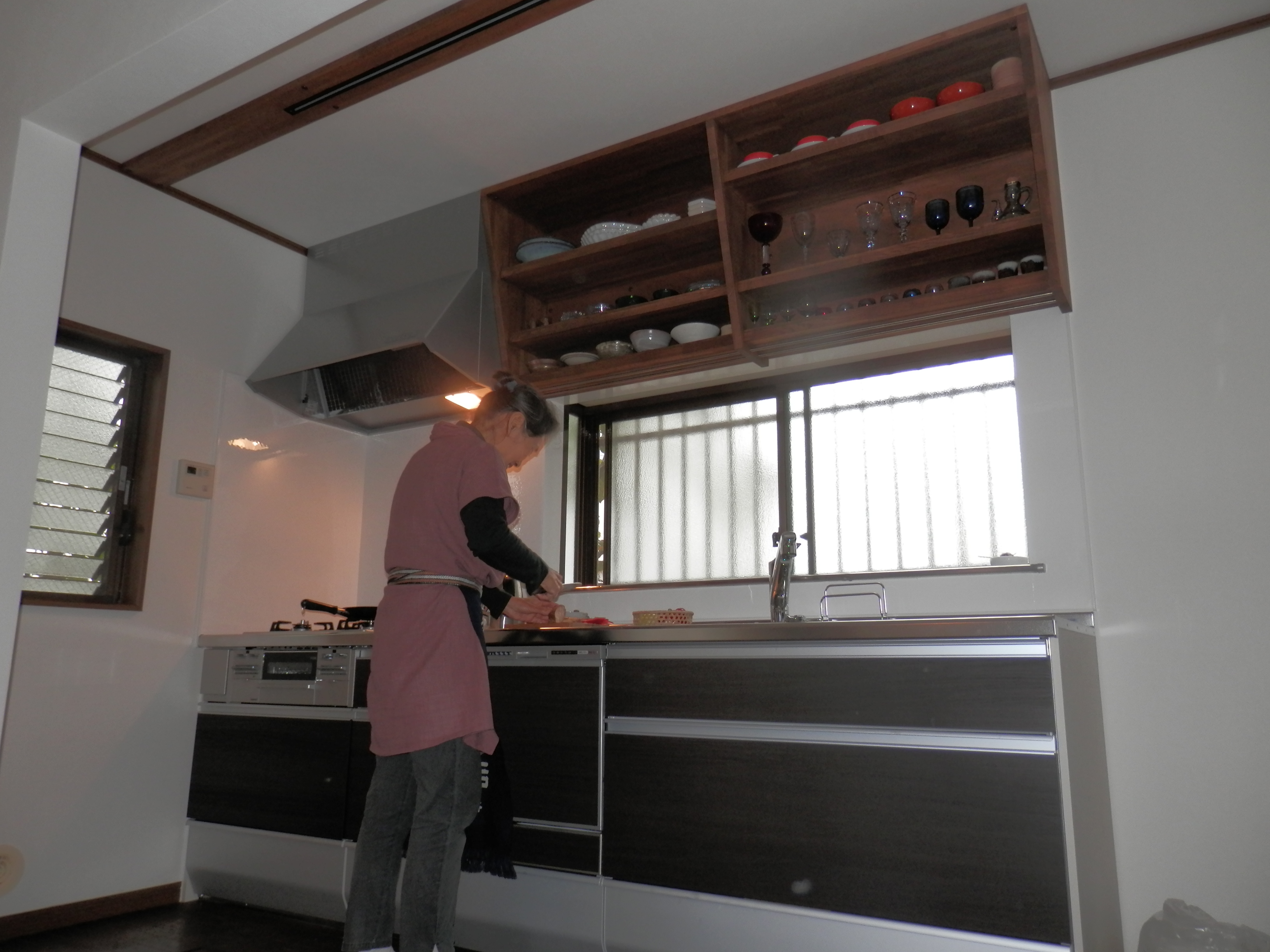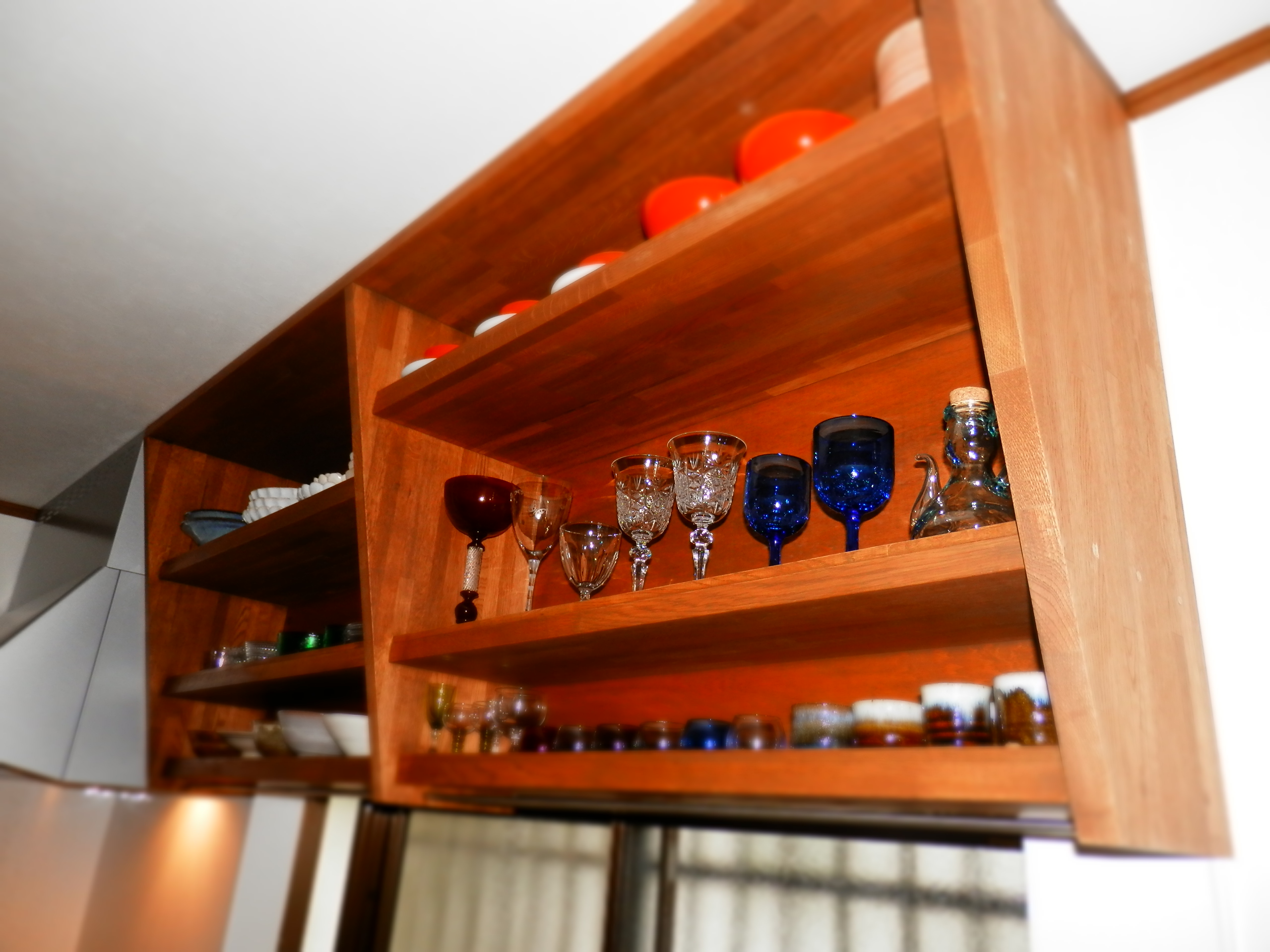 見せる収納として作らせていただいた吊戸棚ですが、下面に