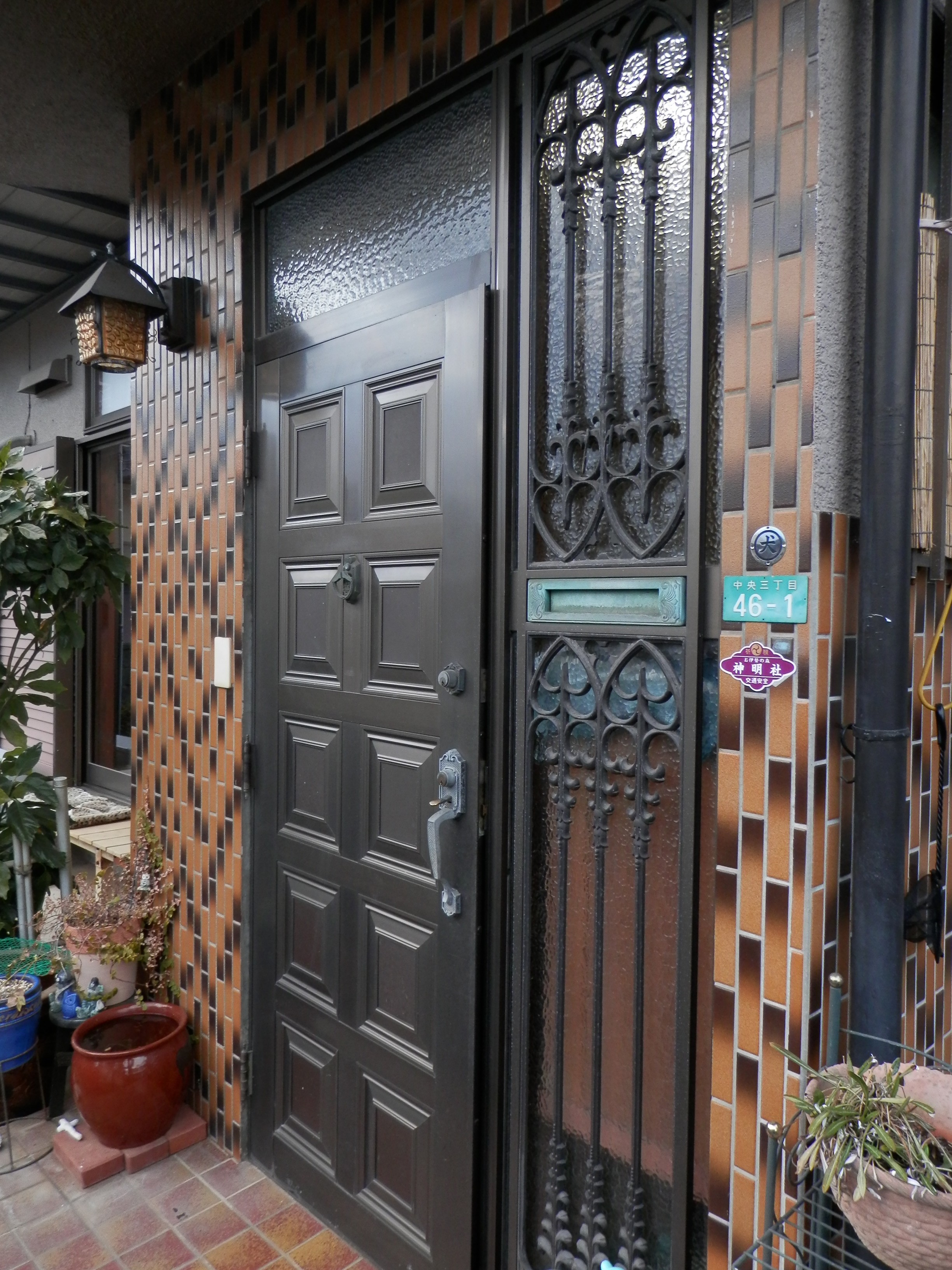 ・玄関ドアが暗いカラーなので明るくしたい。