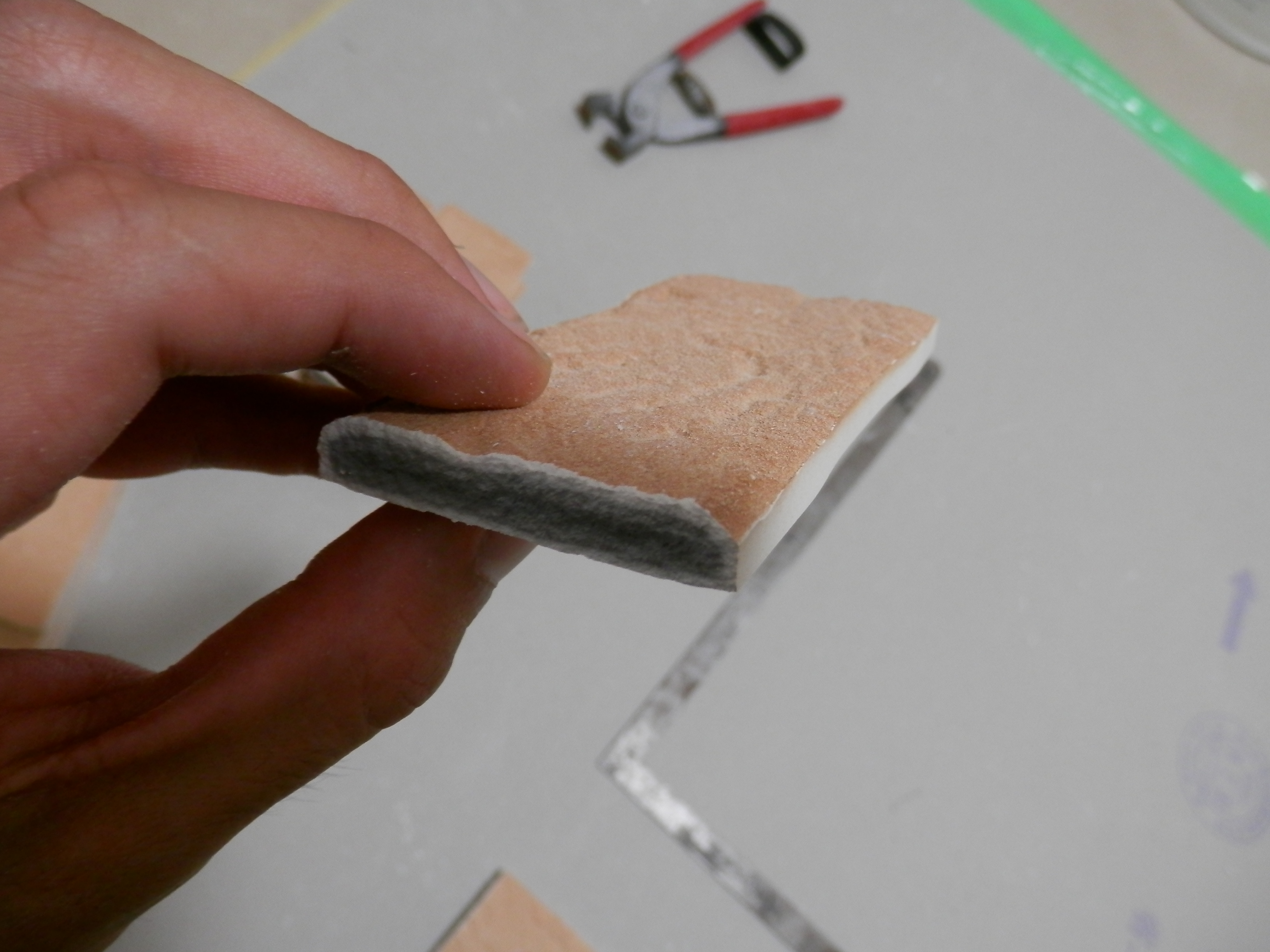 従来のタイルより軽く、施工期間が短い、目地が必要ない。といった点があります。