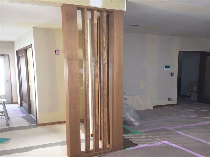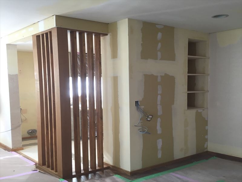 格子は建ちました!内装クロスをおこなうのに下地パテ処理をおこないます。