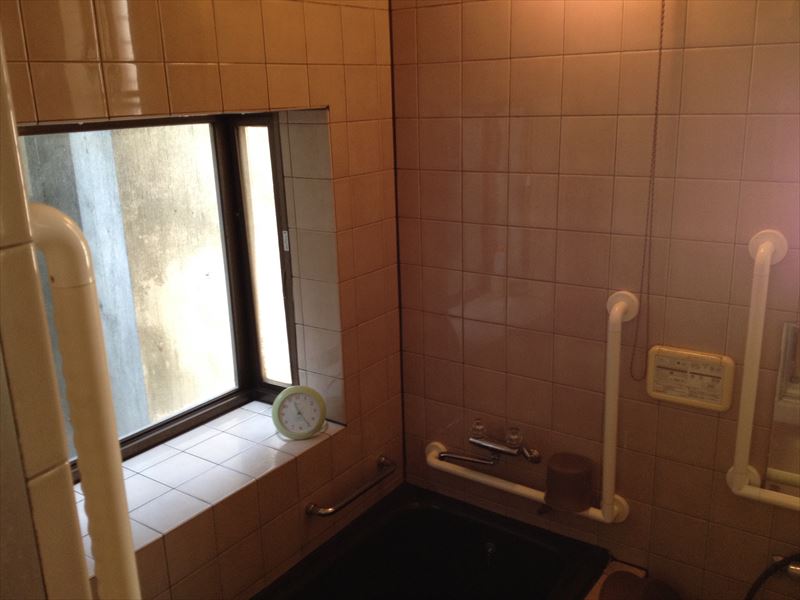 またぎ (420mm)、浴槽深さ(500mm)になります。落差を無くし、重心を安定させながら浴槽に入れます。手すりは使い慣れている場所に設置しております。