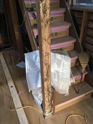 階段のすぐ横の柱だけがなぜか食べられていました。