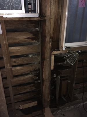 改装工事の解体後(内部スケルトン状態)にかなり激しい雨が降ってきました。
