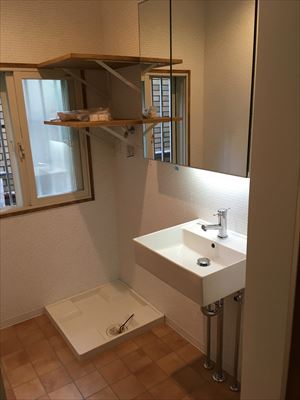 手前に洗面器を設置して、奥に洗濯機パンを設置しています。