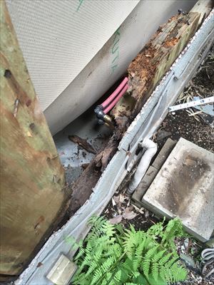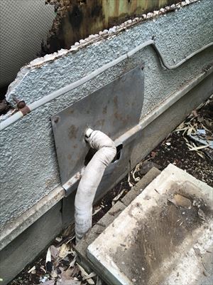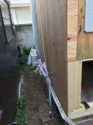 外壁側がひどく傷んでいたので下地からやり変えるために外壁を解体しました。 ↓ 下地を直しました。 あとはモルタルを塗って、乾いたら塗装して、給湯器を取付て完了です。