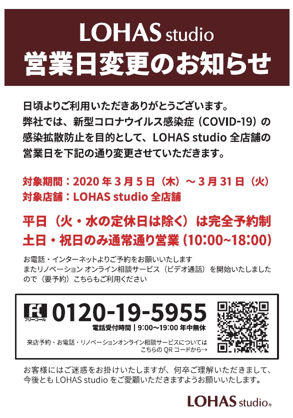 営業日変更のお知らせ(株式会社OKUTA LOHAS studio所沢店のブログ 長谷川 智哉@OKUTAのブログ) リフォームのオクタ