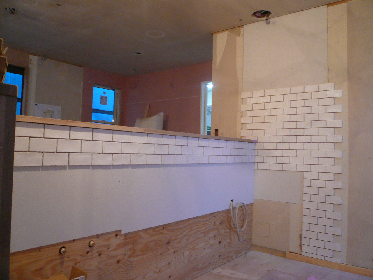 廊下側から入ってすぐ正面に見えるキッチン脇の腰壁には