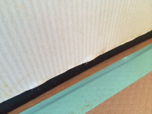 水に塗れてヨレヨレになってしまったシステムキッチンの扉。