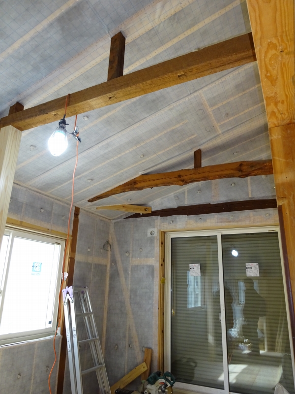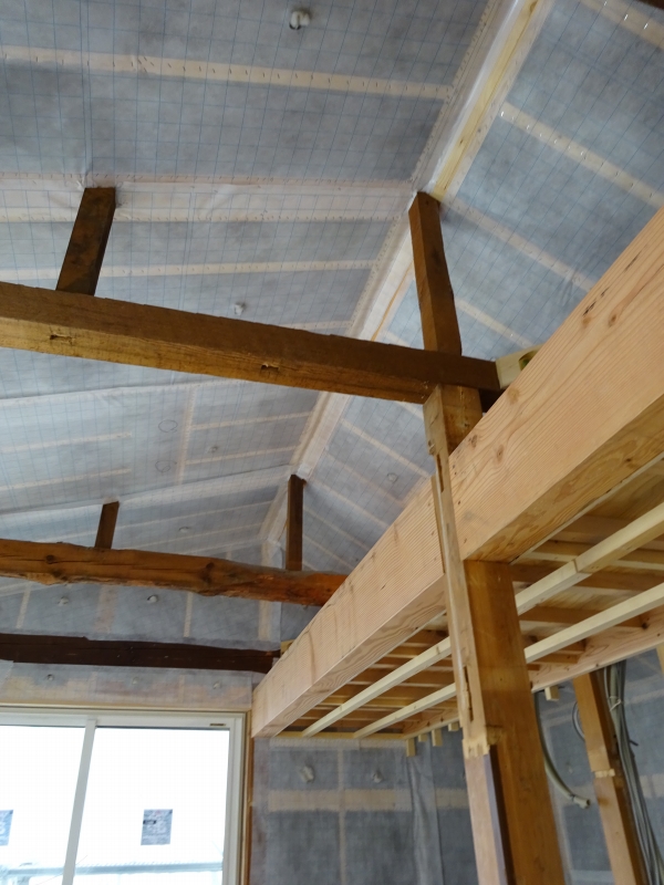 断熱材『セルロースファイバー』の施工が終わったところで