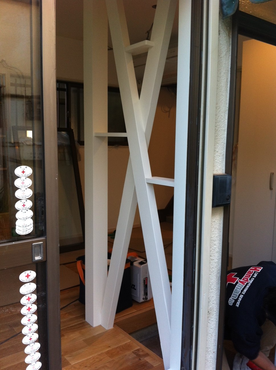 そんなときに、筋交いに小さな棚をつけると、おしゃれな小物置きに早変わり♪