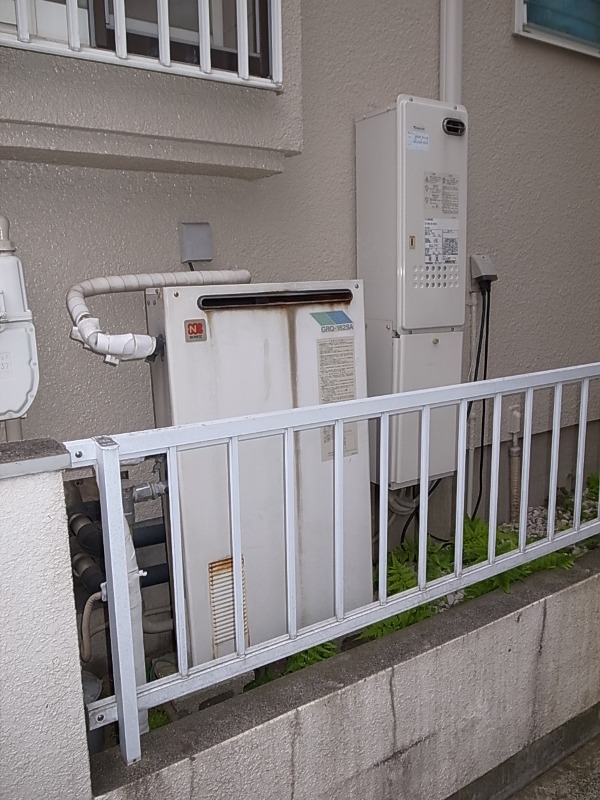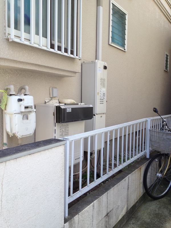 据置タイプから壁掛タイプへの給湯器の変更です。