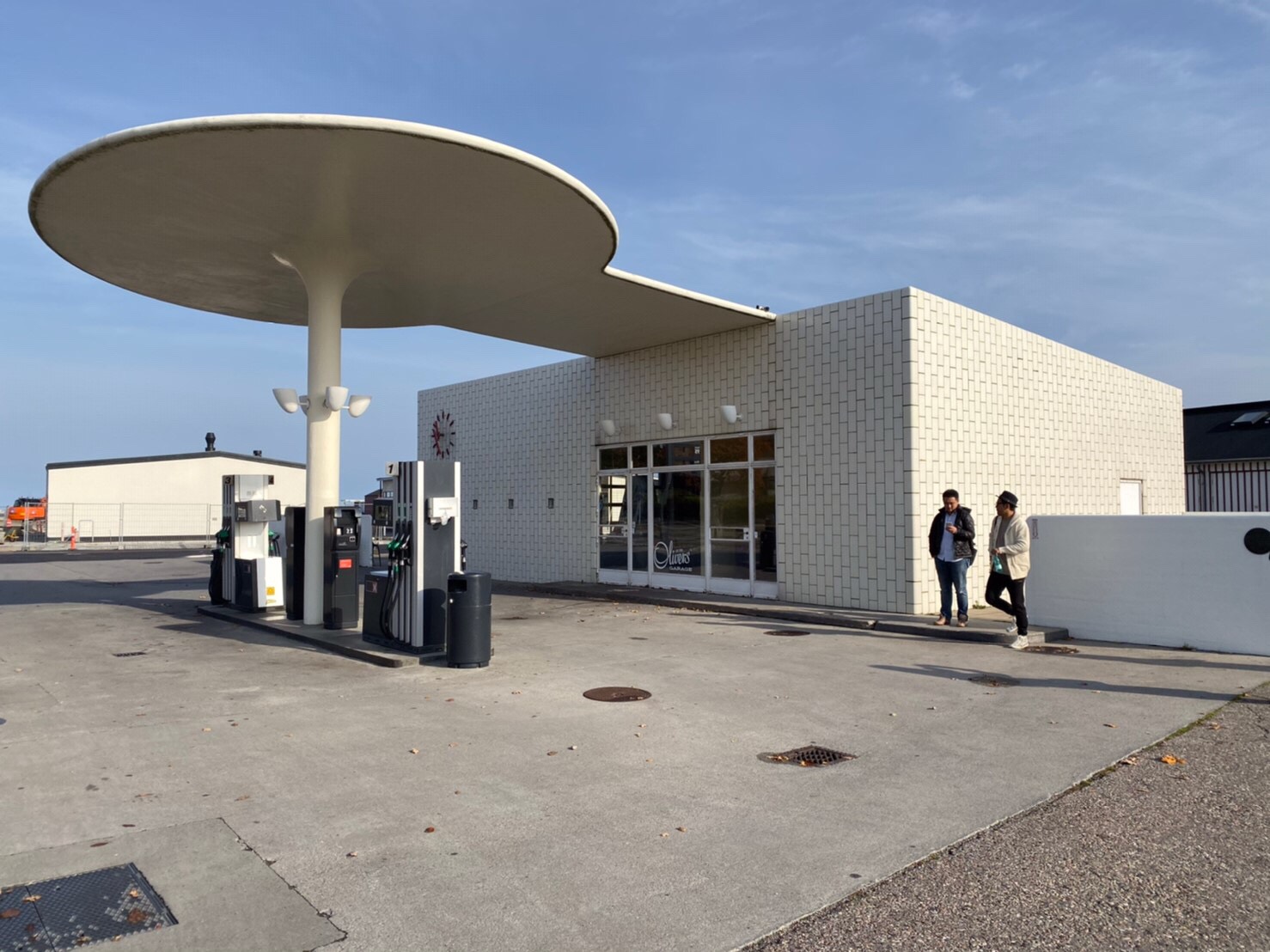 グルントヴィ教会よりスタートし、ヤコブセン建築物・ガソリンスタンドとバスを乗り継ぎ移動。