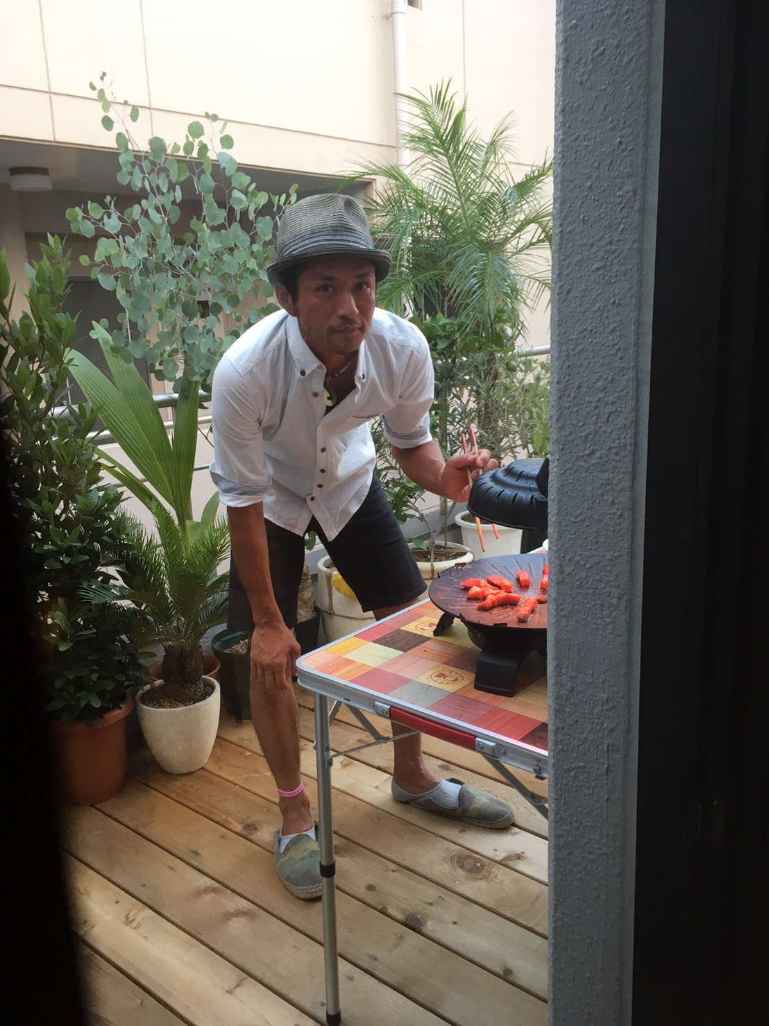素敵なガーデニングで肉を焼き、サーフィンの話で盛り上がり♬