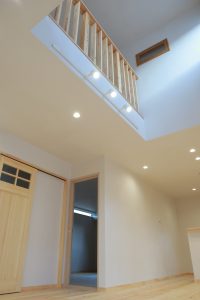 吹抜の上は室内物干しが出来る開放廊下としていますが、非常に