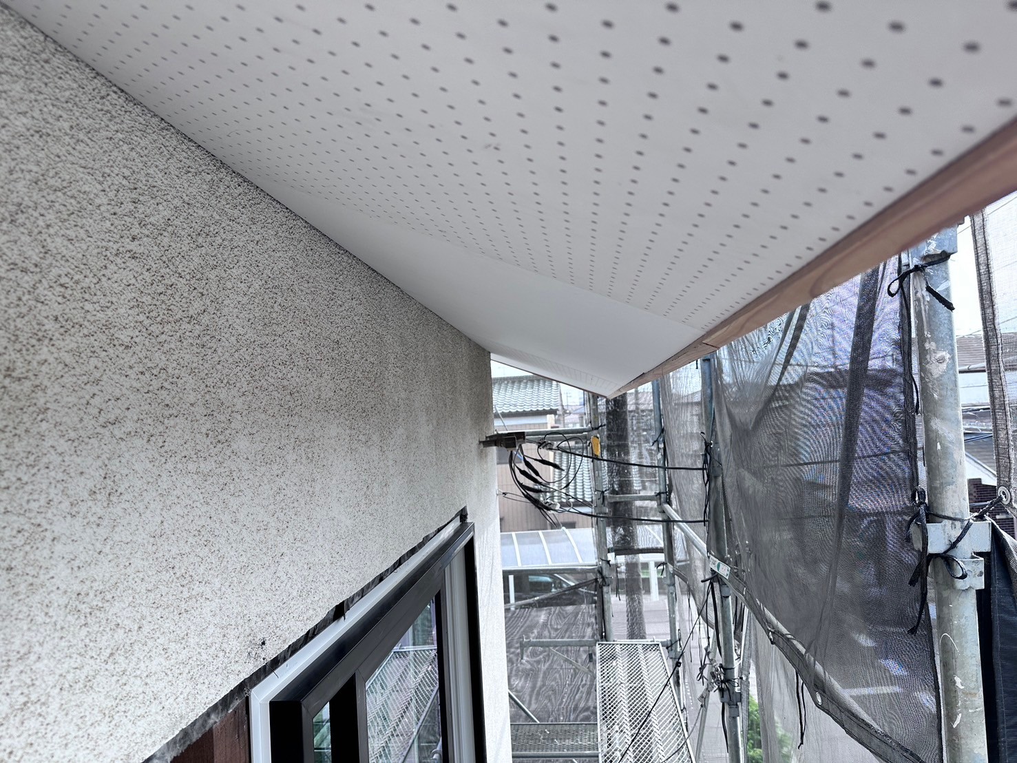 が傷みやすい為、今回は破風を回して、軒裏をケイカル板で覆います。