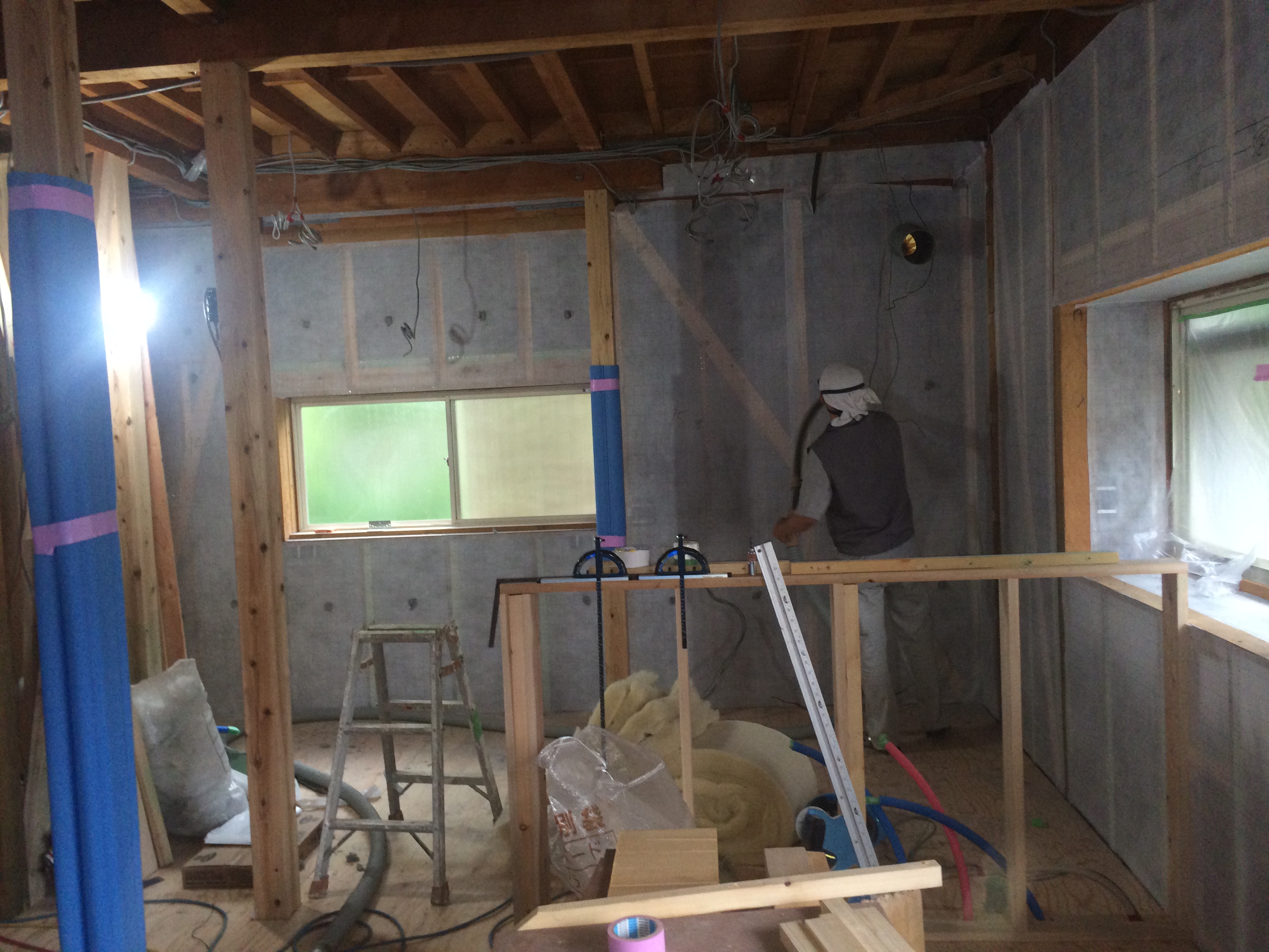 H様邸ではセルロースファイバーにて断熱施工をしております。