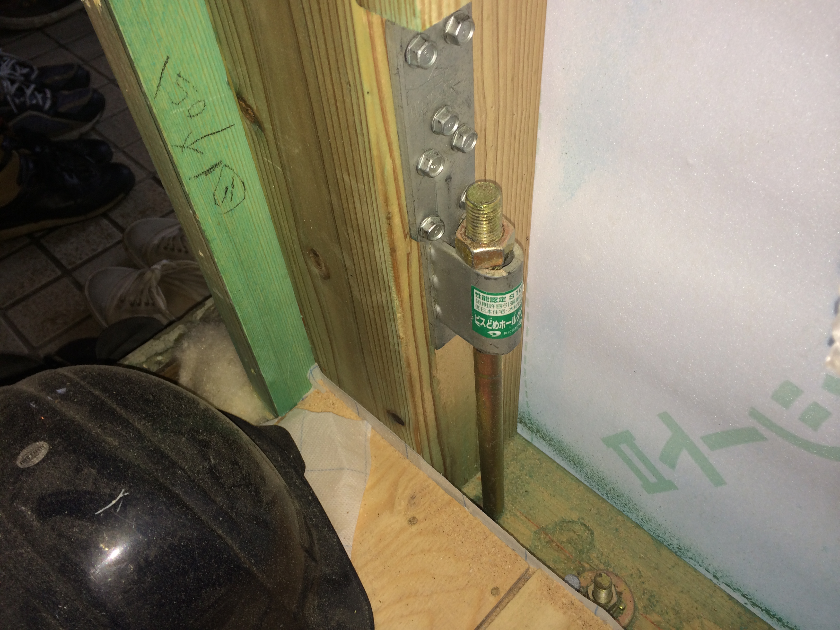 こちらはホールダウン金物といって、基礎・土台・柱の筋結に