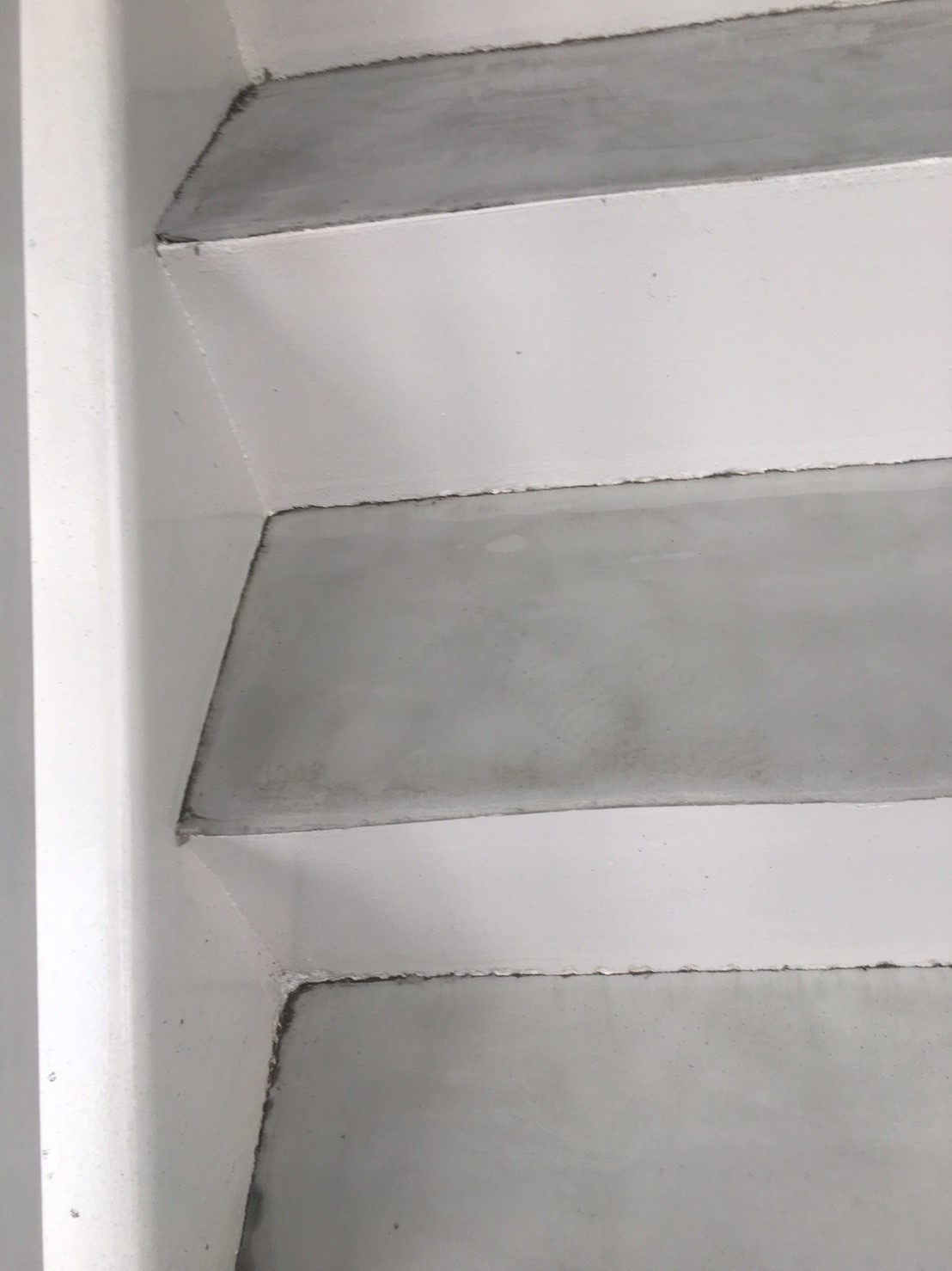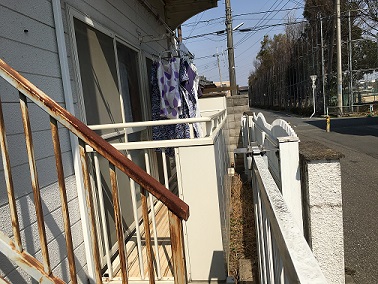 IMG_5048 blog 外階段の踏み板部分は、長尺のシートが熱で剥がれてしまう状態