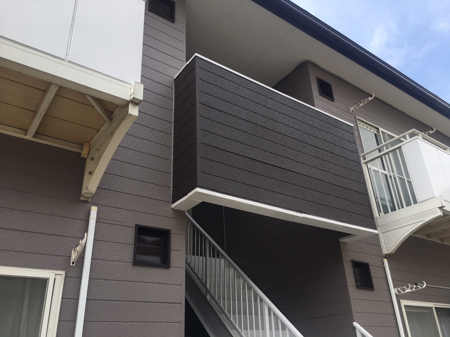 平山邸 外装_170831_0001  階段部分の長尺シートは張り直しをしても剥がれてしまう為、