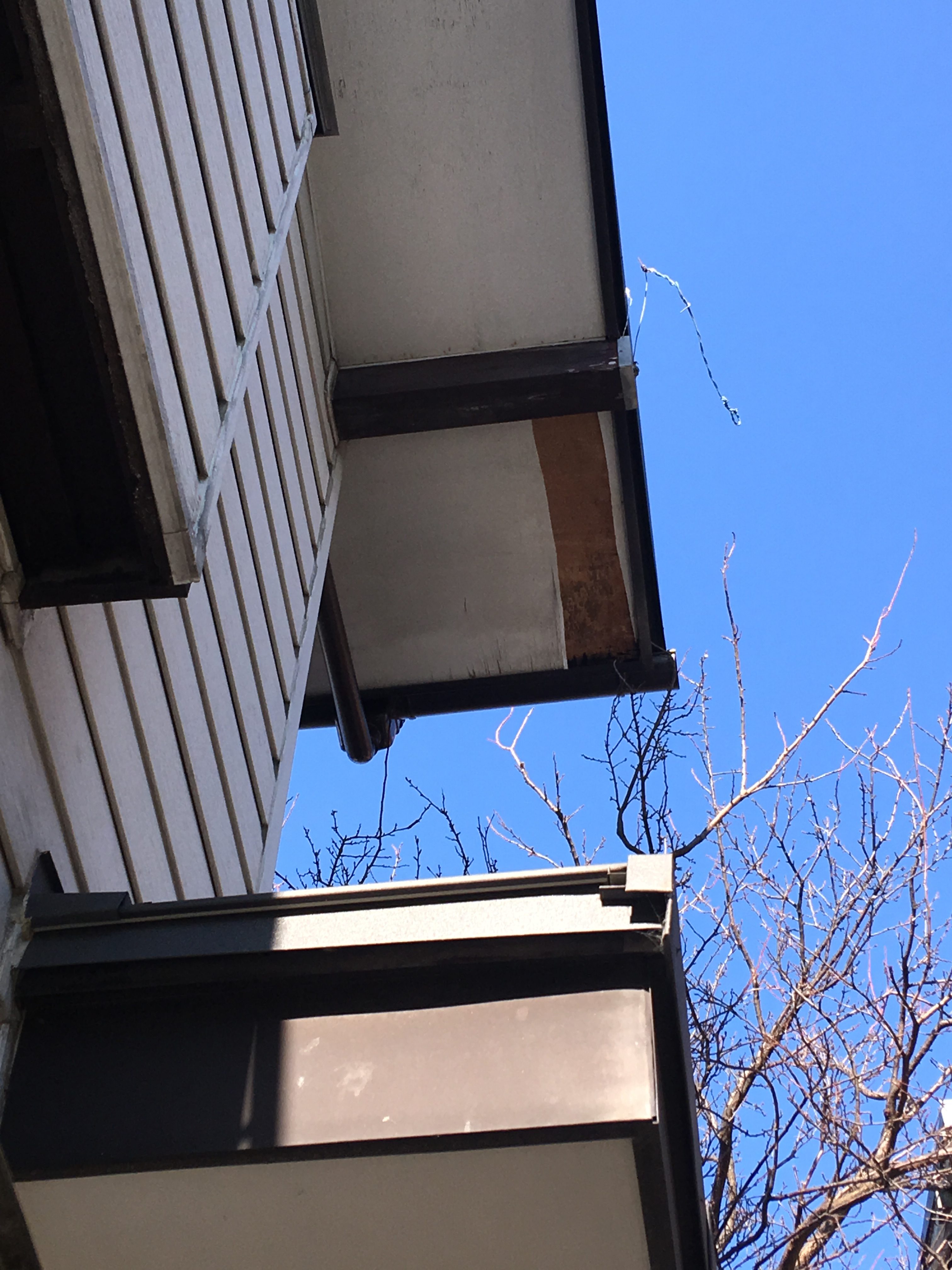 築30年伝後の木造住宅。今回の台風で軒天のはがれる被害が続出。