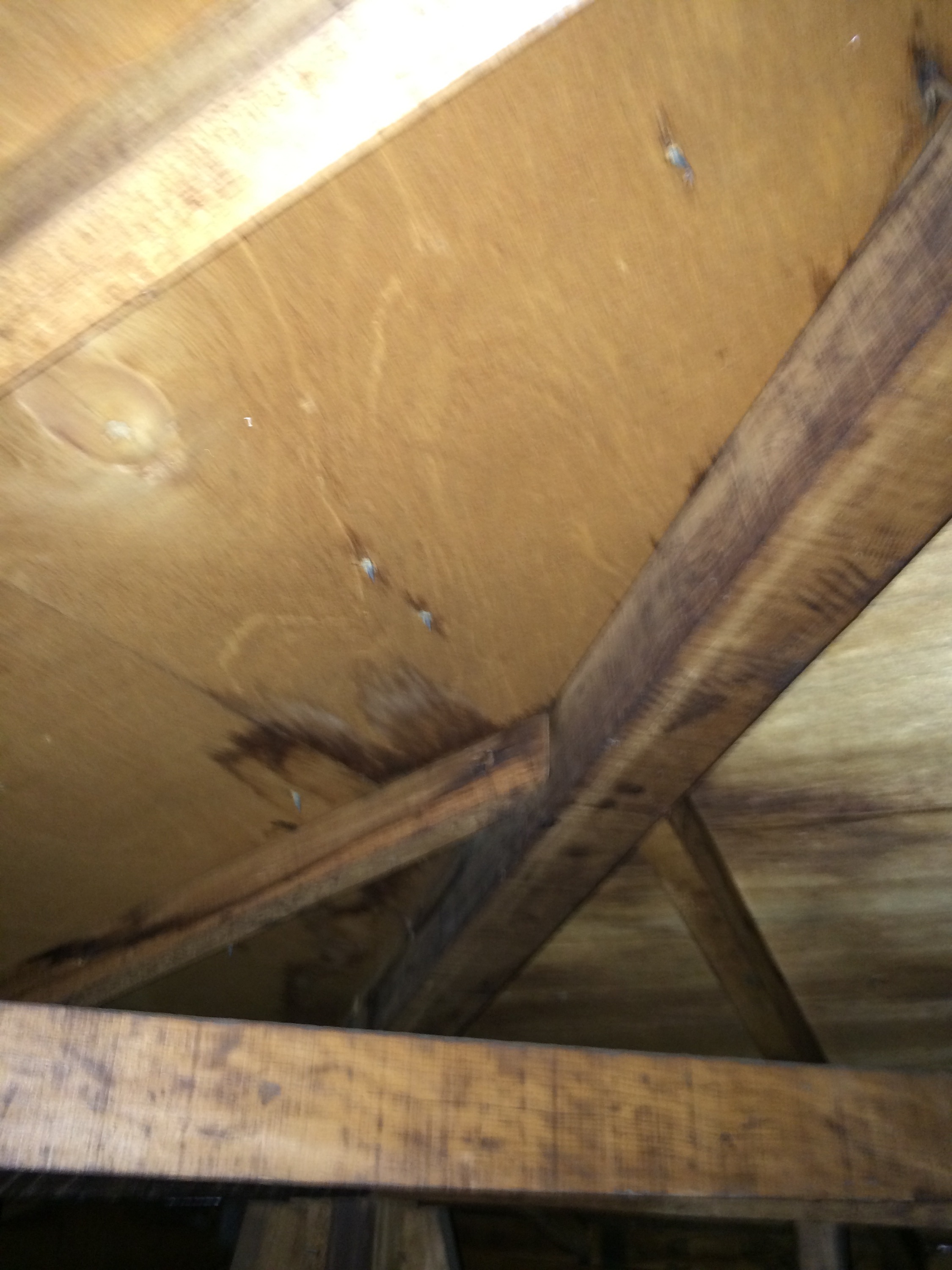 点検依頼があり、天井裏を見てみると雨漏れの形跡がありました。