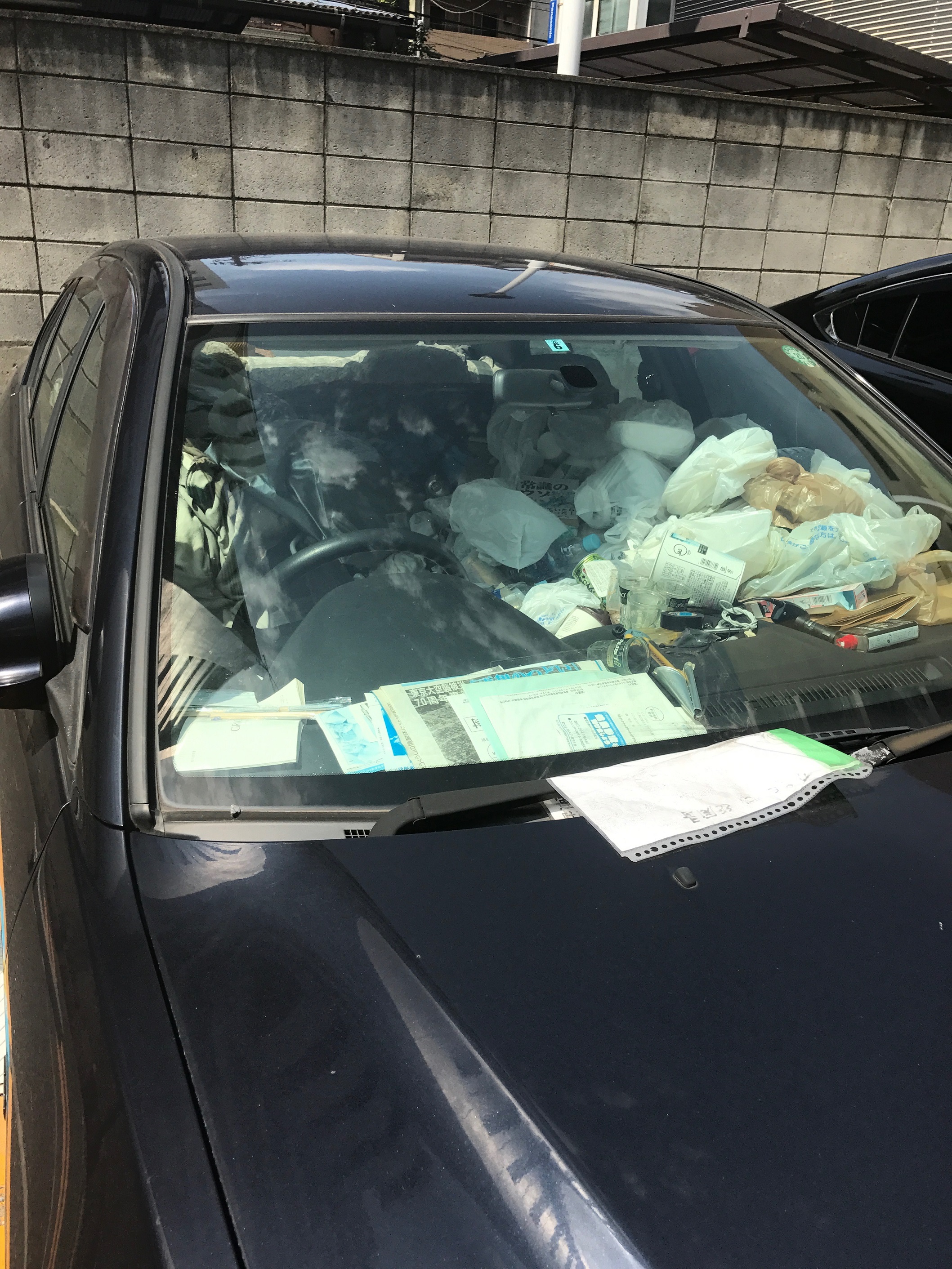 その際に、添付写真のようなゴミだらけの車が放置されておりました。