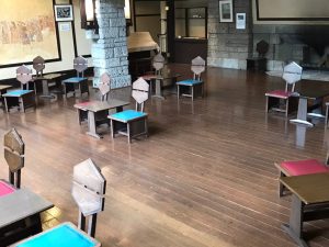 椅子は、F.L.ライトのデザインなのか不明らしいですが、六角形にスリットの入ったデザインは素敵でした。