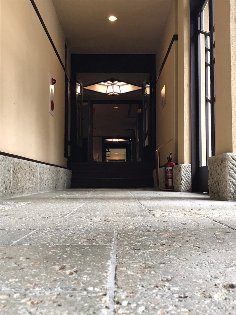 外と建物内部の床の高さをフラットにすることも、F.L.ライト作品の特徴です。