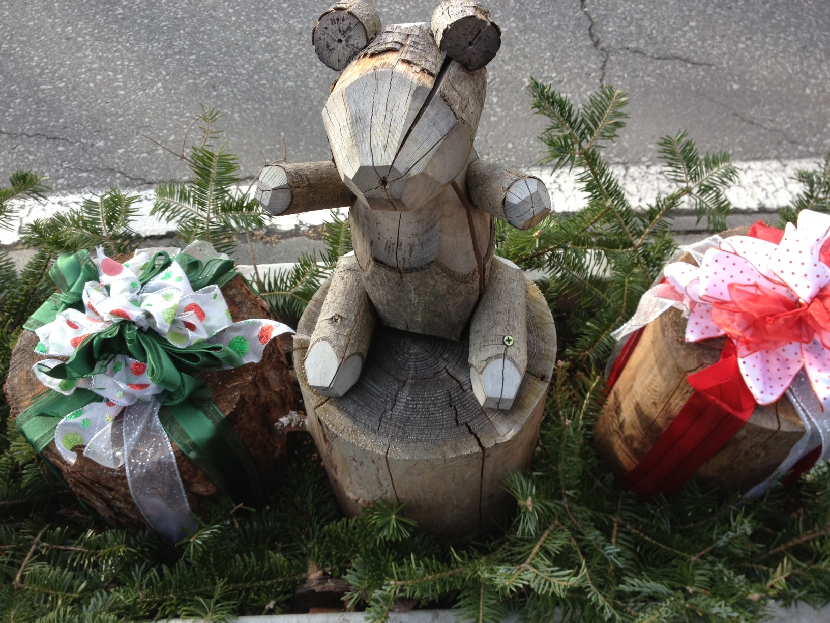 駅や大通りに、可愛らしい手造りの木製置き物がたくさんありました。