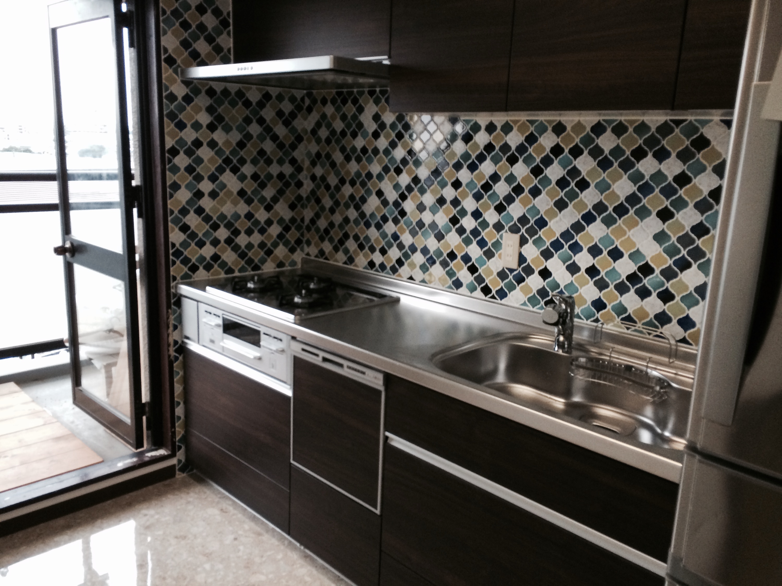 キッチンにタイルを施工。