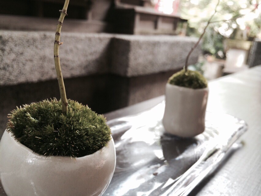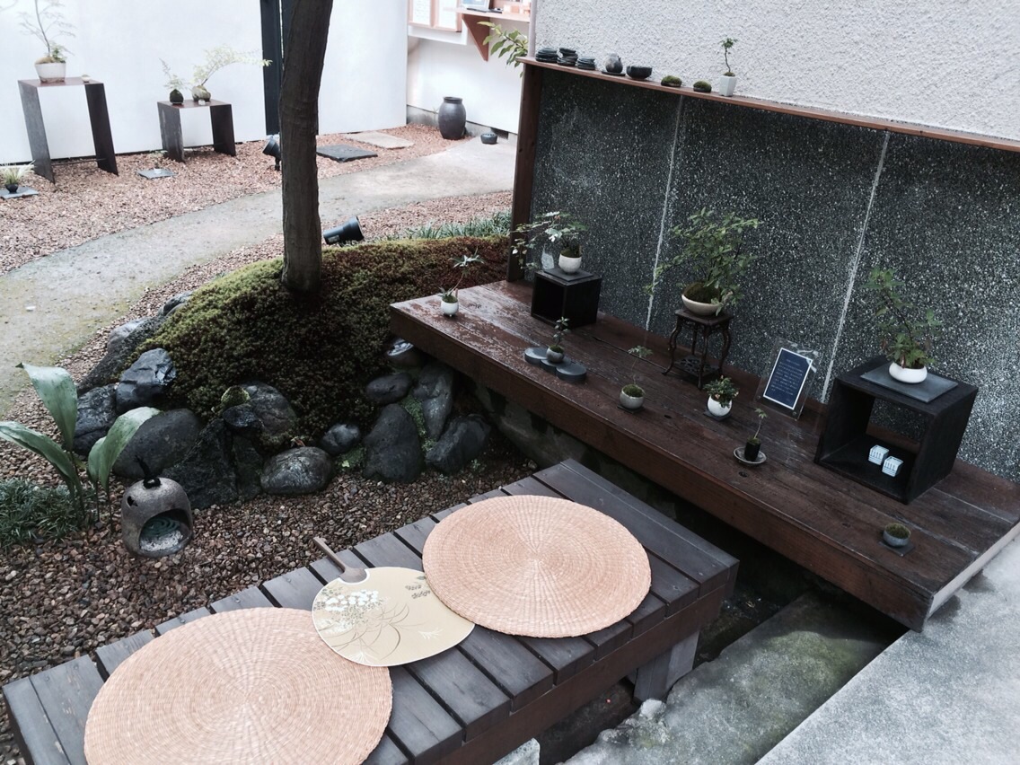 各所に苔の盆栽が置かれ、休憩スペースも完備されてます。