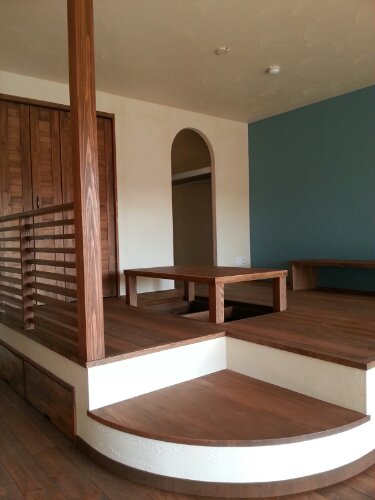 青葉区M様邸。床、収納扉はパイン材、壁面にはアクセントでファロー&ボールの塗装で仕上げました。間もなく仮住まい~戻られ新しい生活がスタートされます。