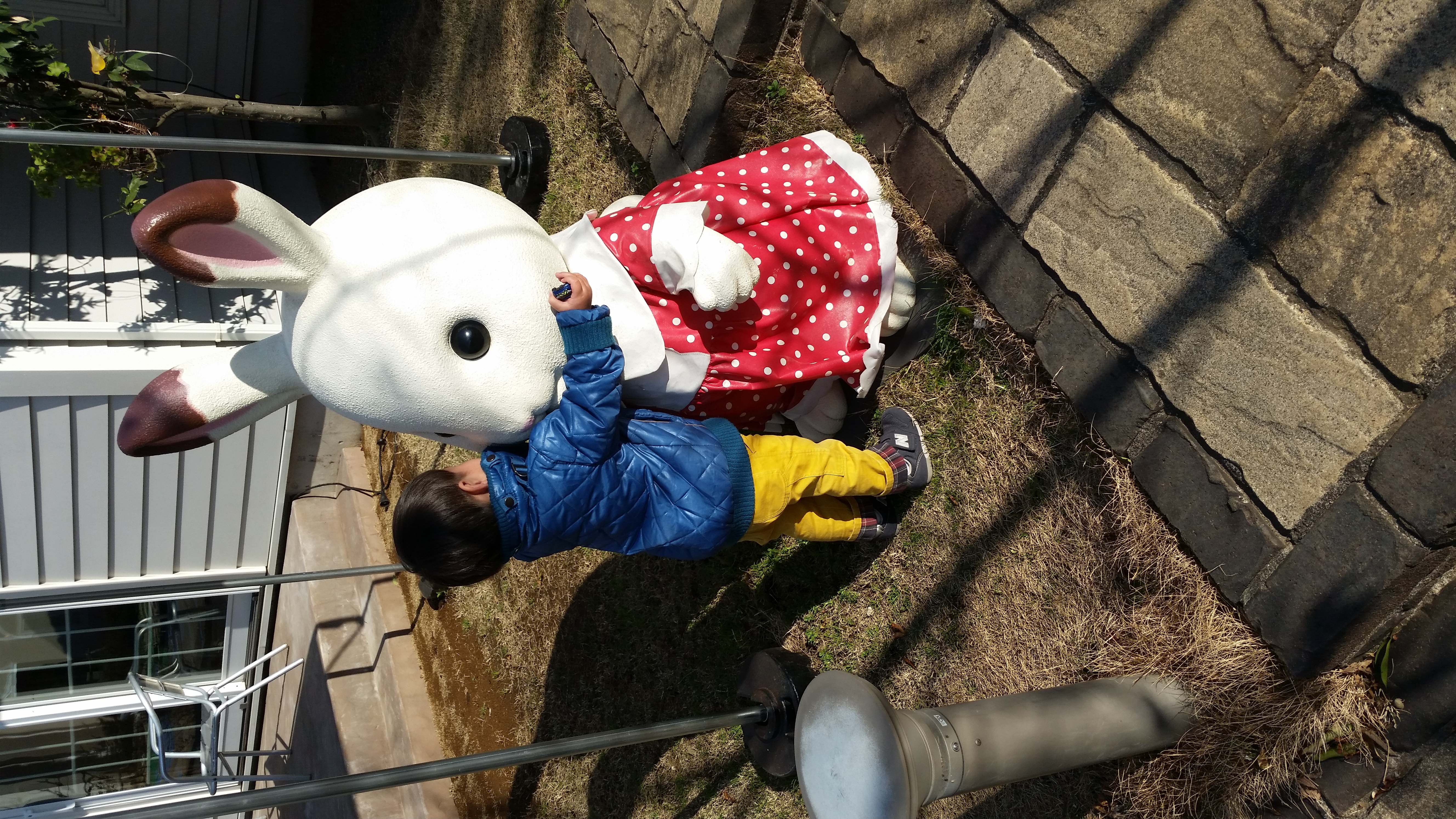 展示場にいた動物さんたち寒そうだから、ギュ~してあげると突然言い出した息子。