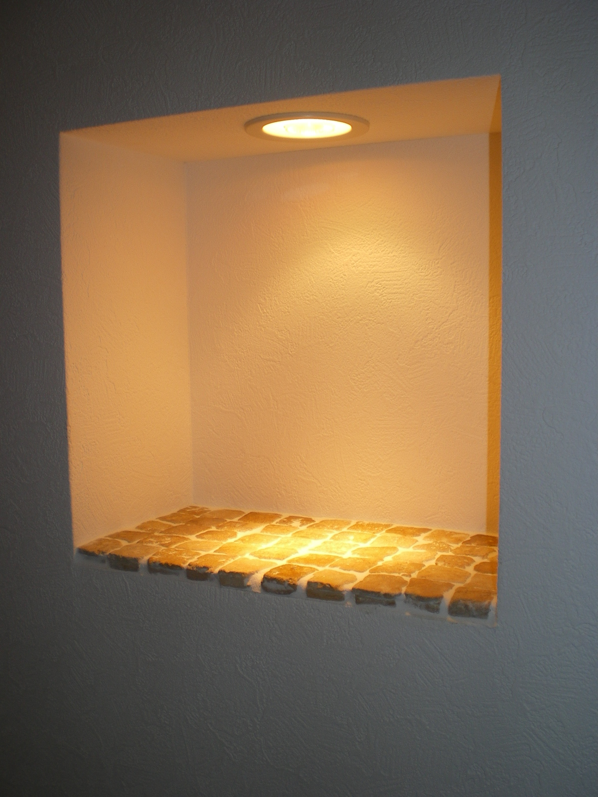 LDKにカウンターや、本棚、ニッチ開口をつくり、