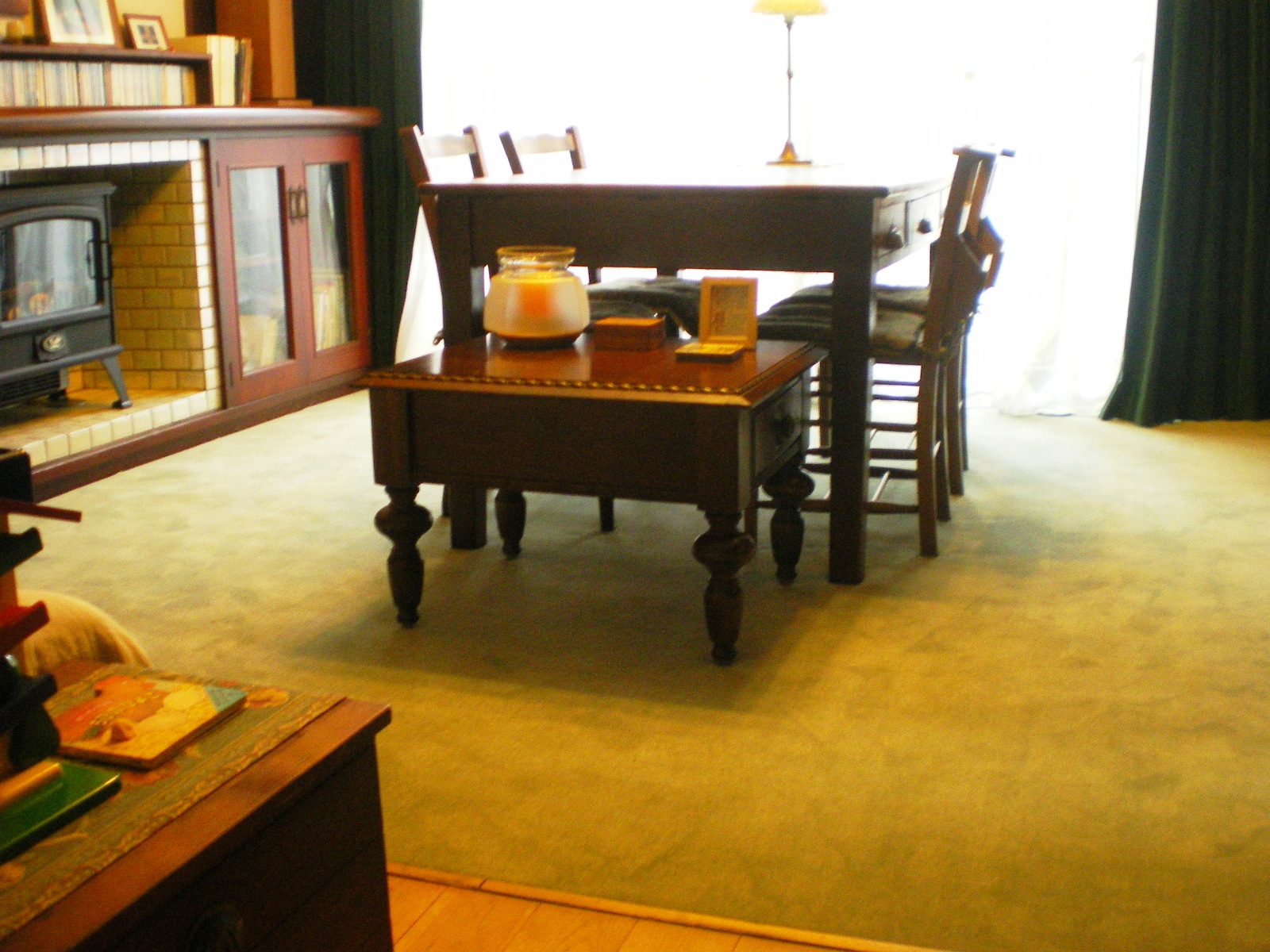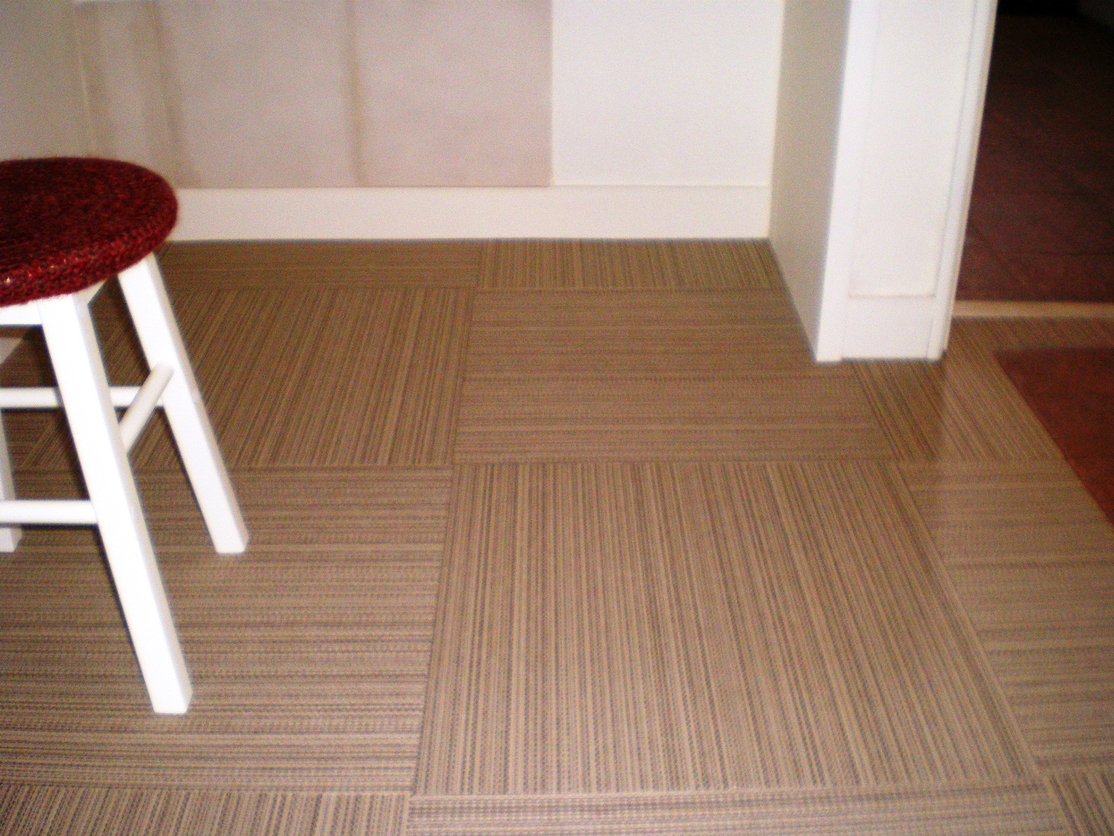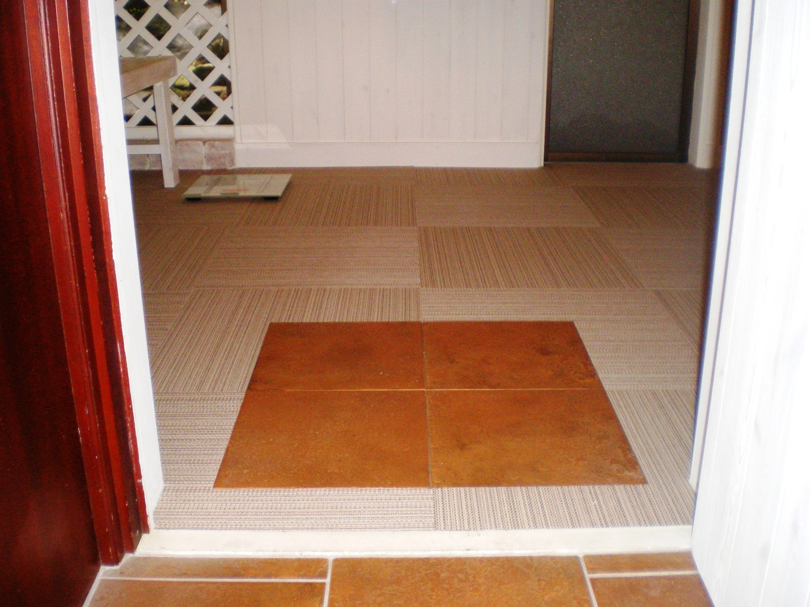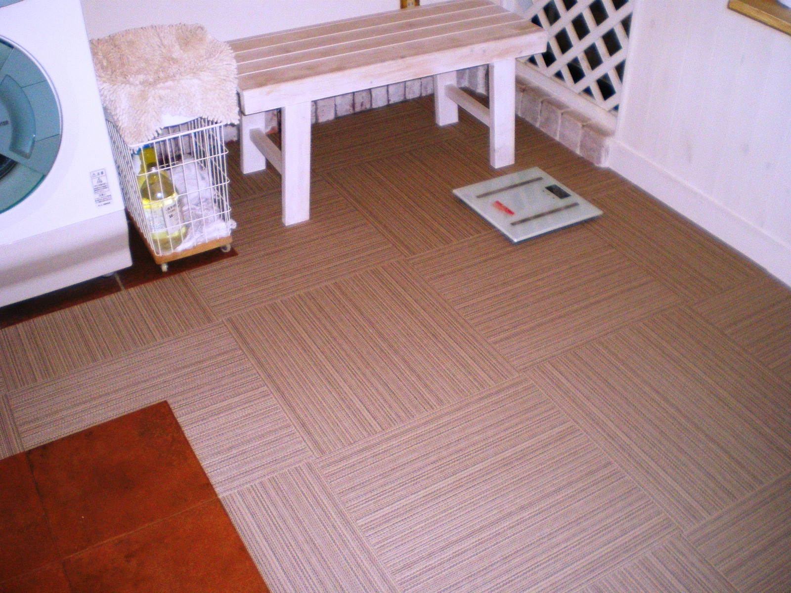 また、リビングのカーペットと脱衣所のカーペットも張り替えました! 洗濯機の下とセンターに貼られているのはテラコッタタイルです。