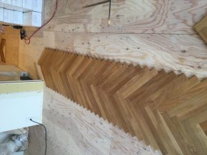オークのフローリング、ヘリンボーン張りです! 基準線を決めました! 完成が楽しみです!! ...