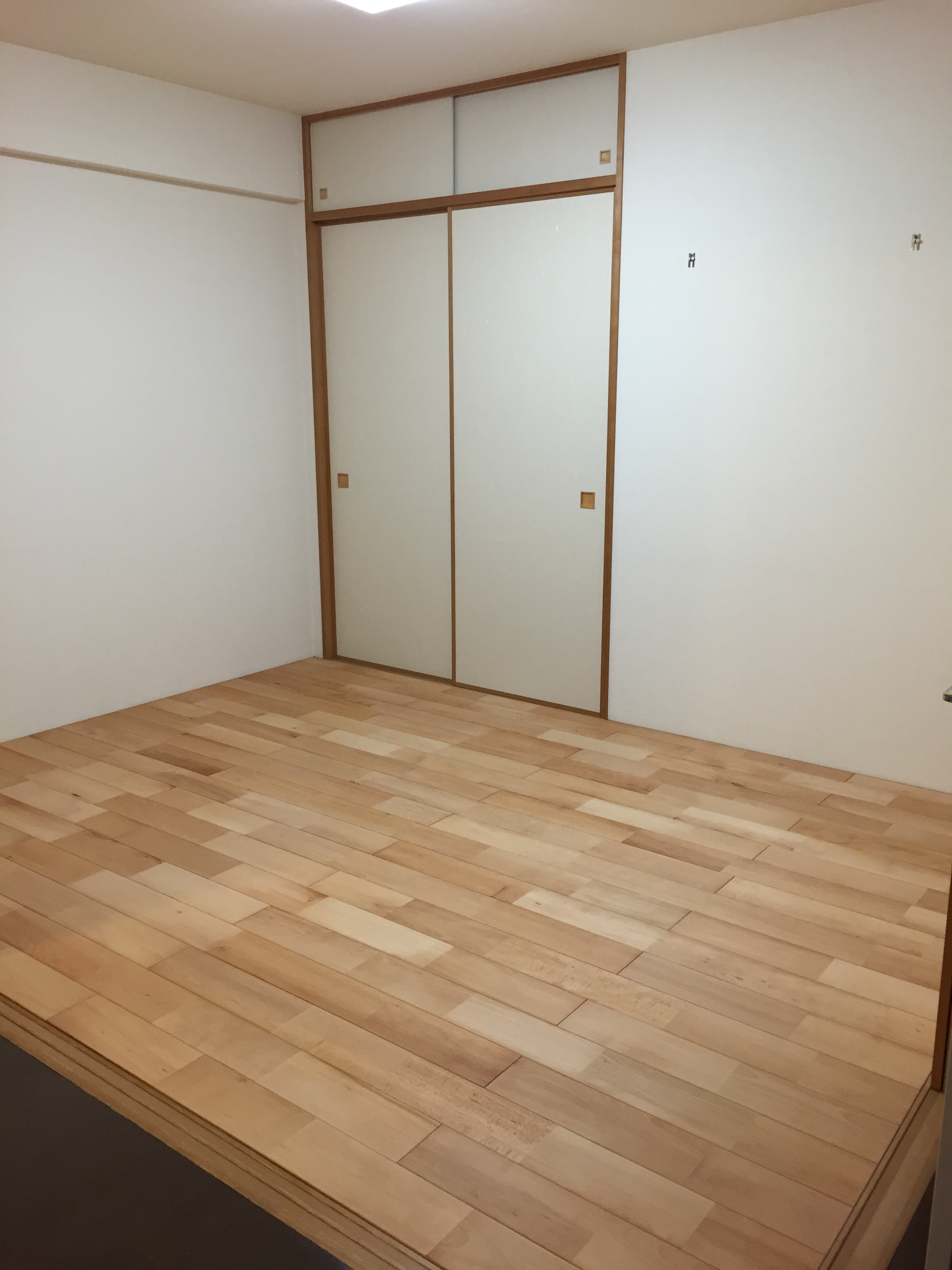 先日S様邸にてマンションの和室6帖畳をビーチ無垢フローリングへと床のリフォームをさせて頂きました。