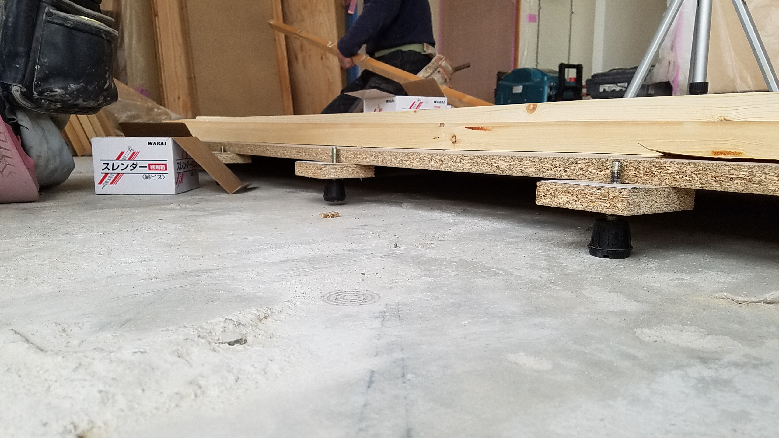 現在リフォーム進行中のお家にて防音を確保する為の置き床施工をしています。
