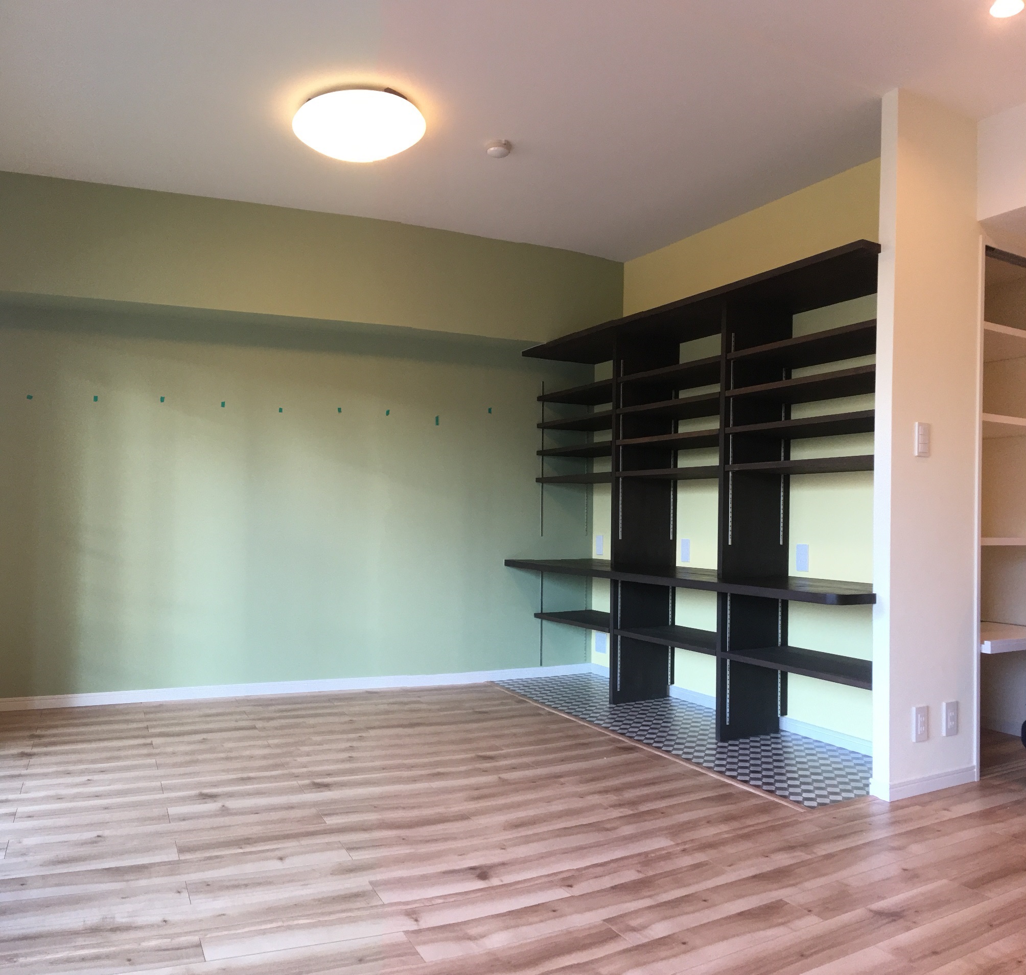 今回完工したお家では、リビング空間に壁面収納を造作しました。