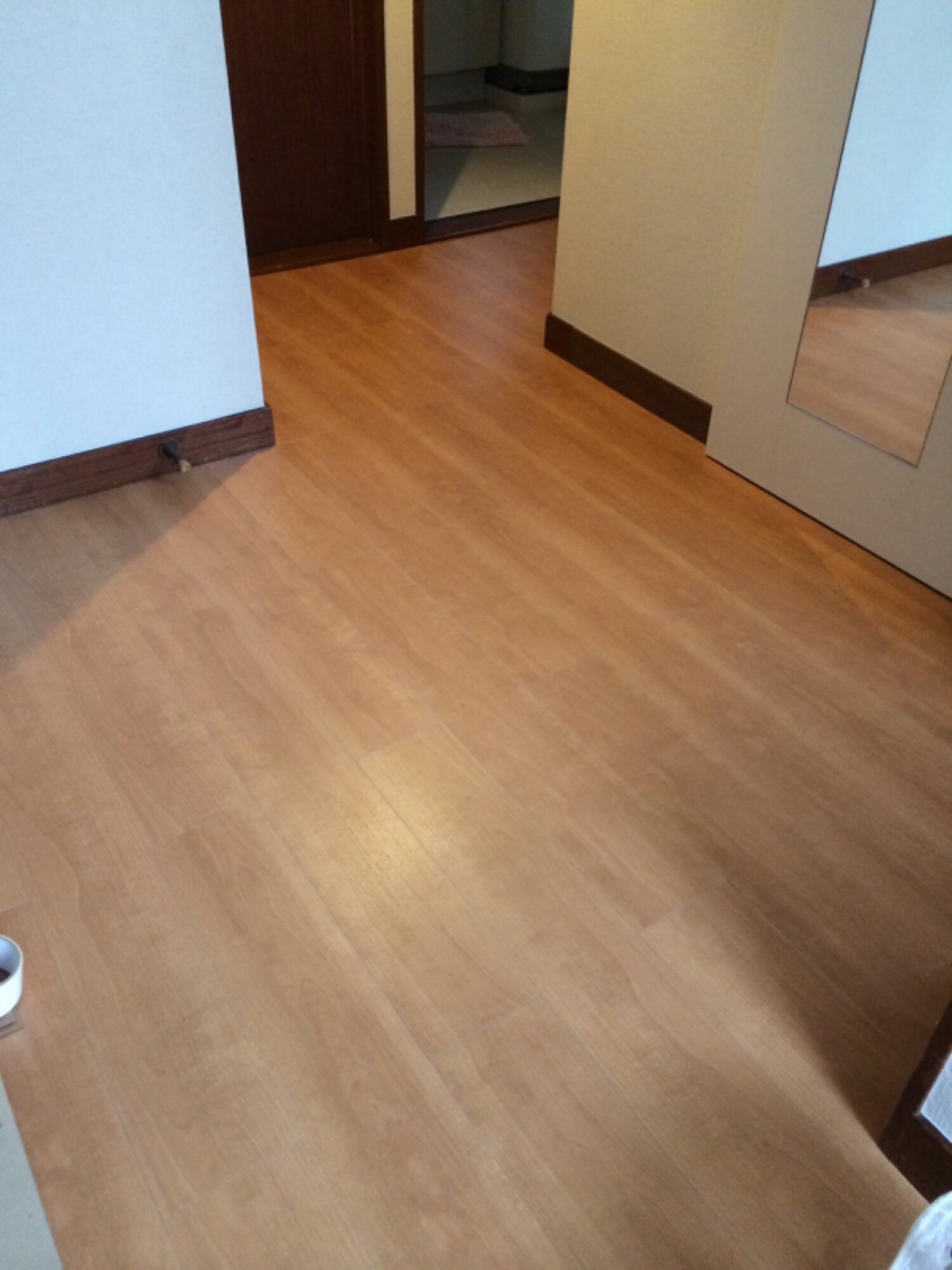 既存の床を解体することなく上から貼るリフォーム材を施工しました。