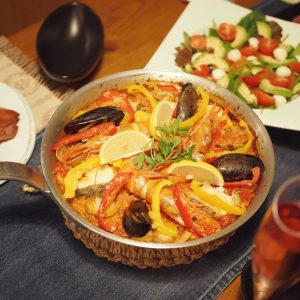 夫リクエストのパエリアは、ちょっと芯が残ってしまいましたが、