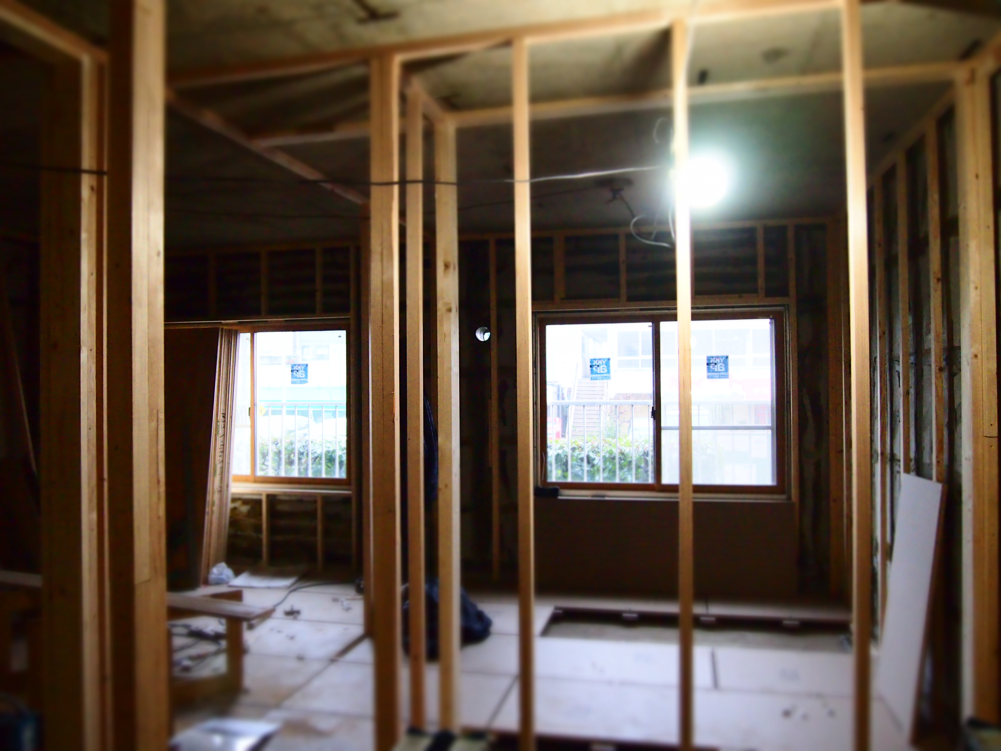 壁が立ってくると、お部屋の広さなど、リフォーム後のイメージが少しできますね。