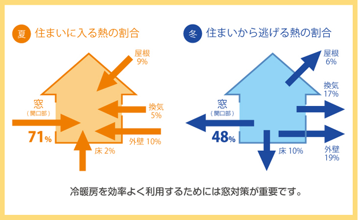 実は、窓から逃げていく熱は全体の48%もあるのです!