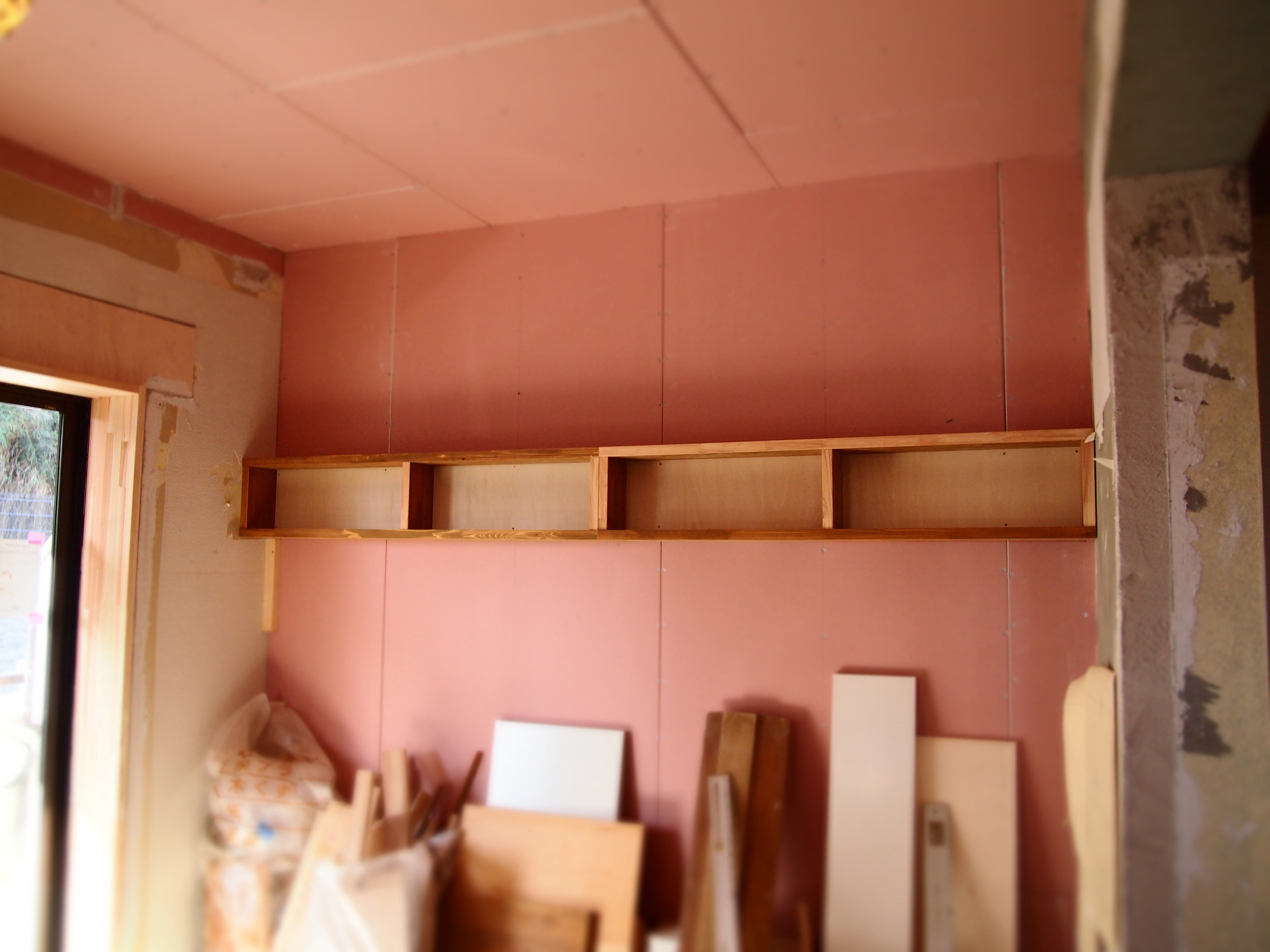 リビングにも、ちょっとしたものが飾れる棚が出来上がっています。
