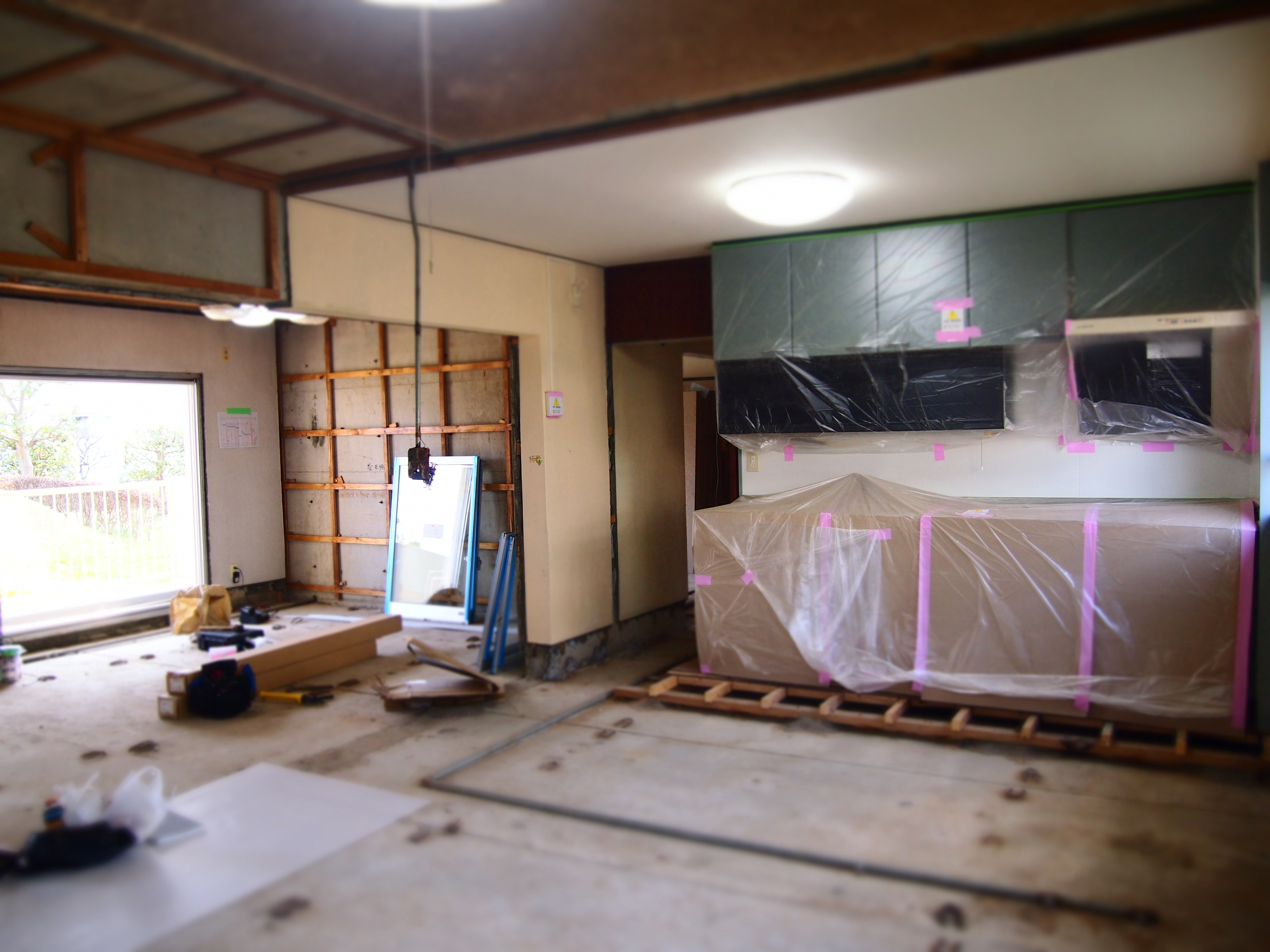 キッチンは再利用する為、しっかりと養生をしておきます。