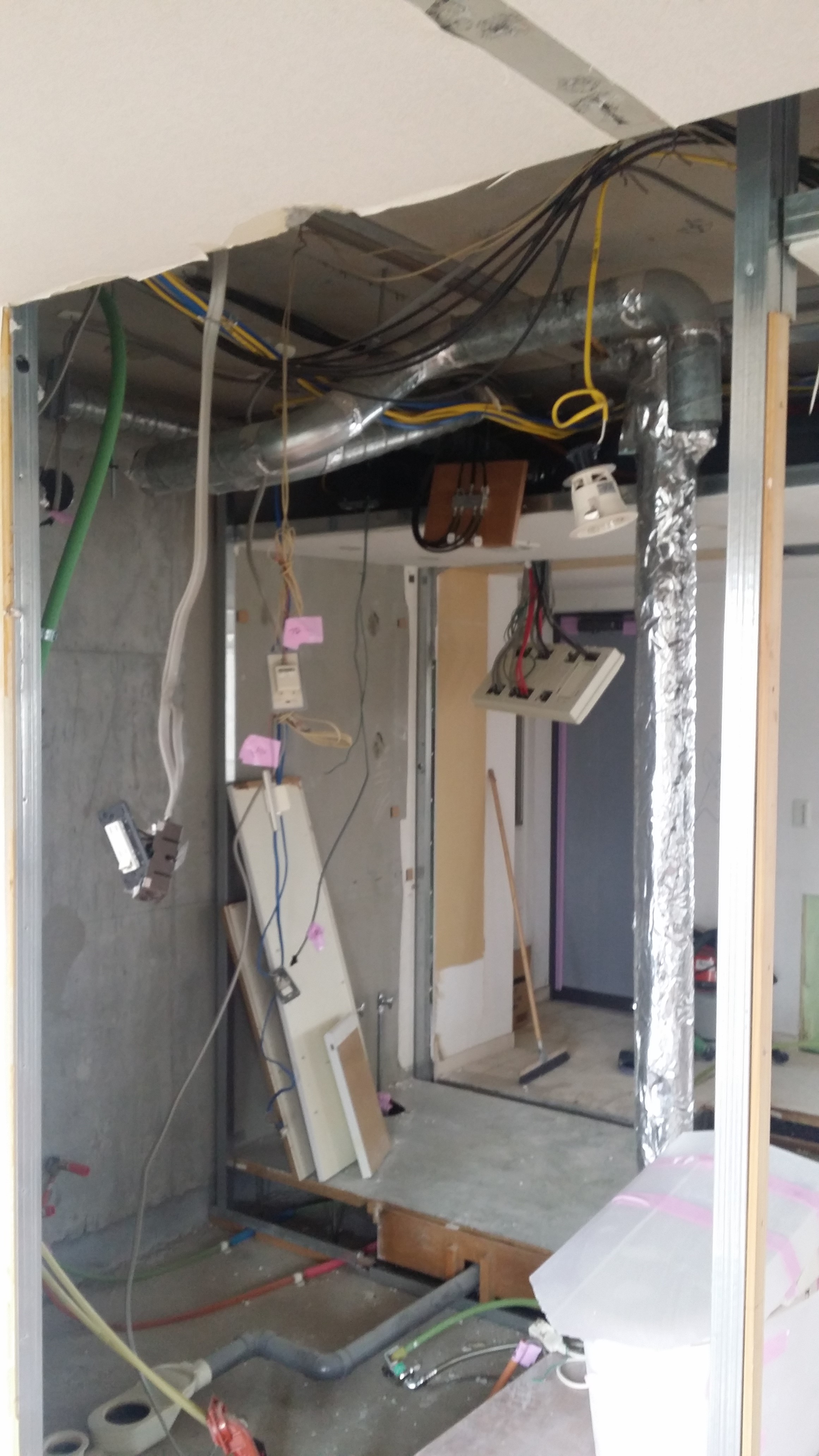 マンションのスケルトンリフォームで、既存のお風呂から、キッチンから、壁から全て解体しております。 解体だけでも一週間かかりました。 残材も沢山出ます。