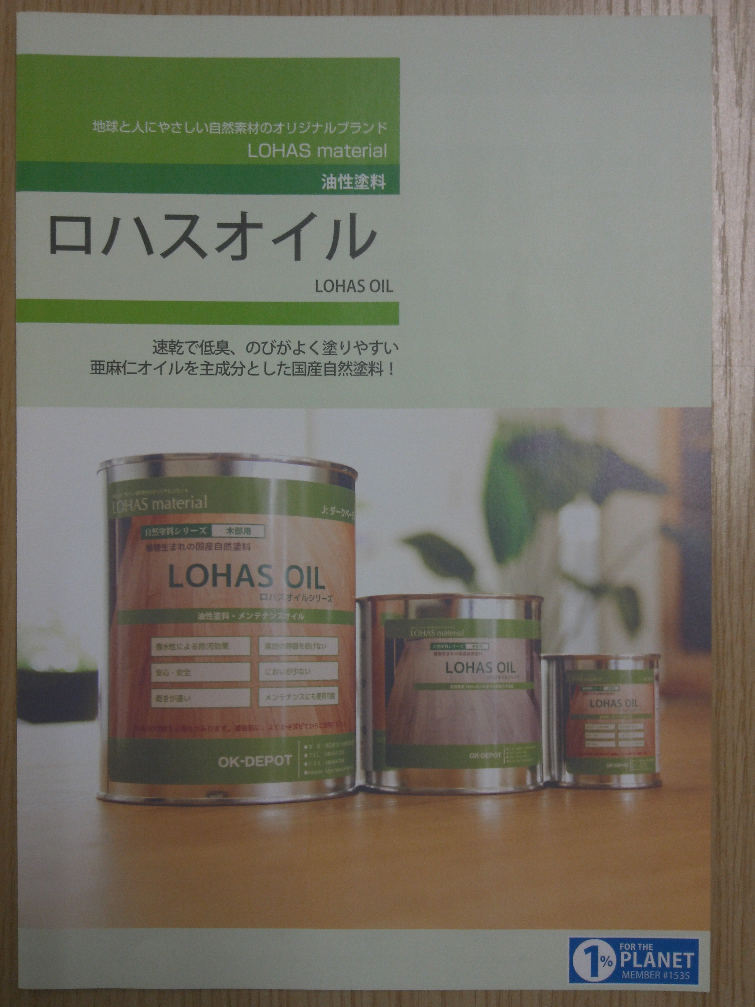 植物オイルが浸透、素地の呼吸を妨げない